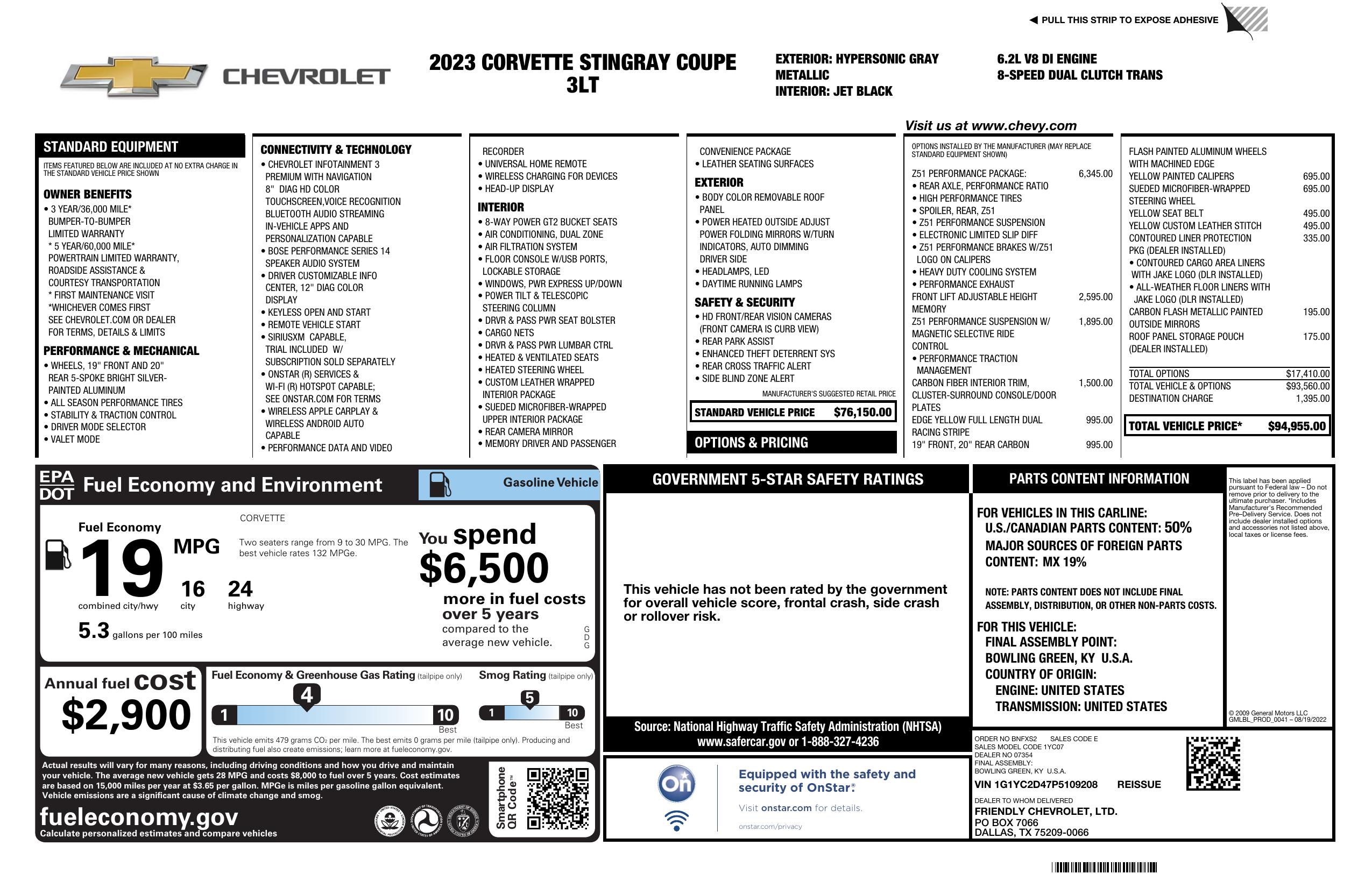 2023 Chevrolet Corvette 2dr Stingray Cpe W/3 Lt