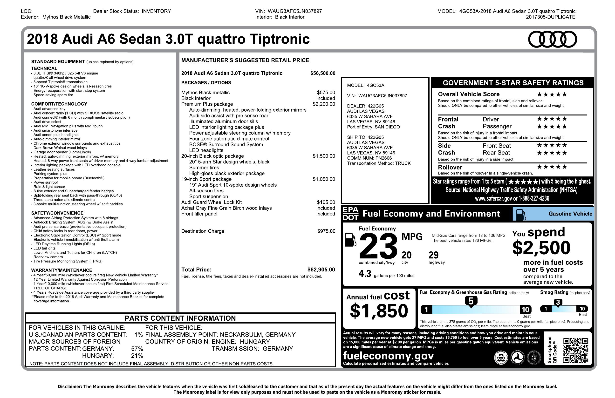 2018 Audi A6 3.0 Tfsi Premium Plus Quattro Awd