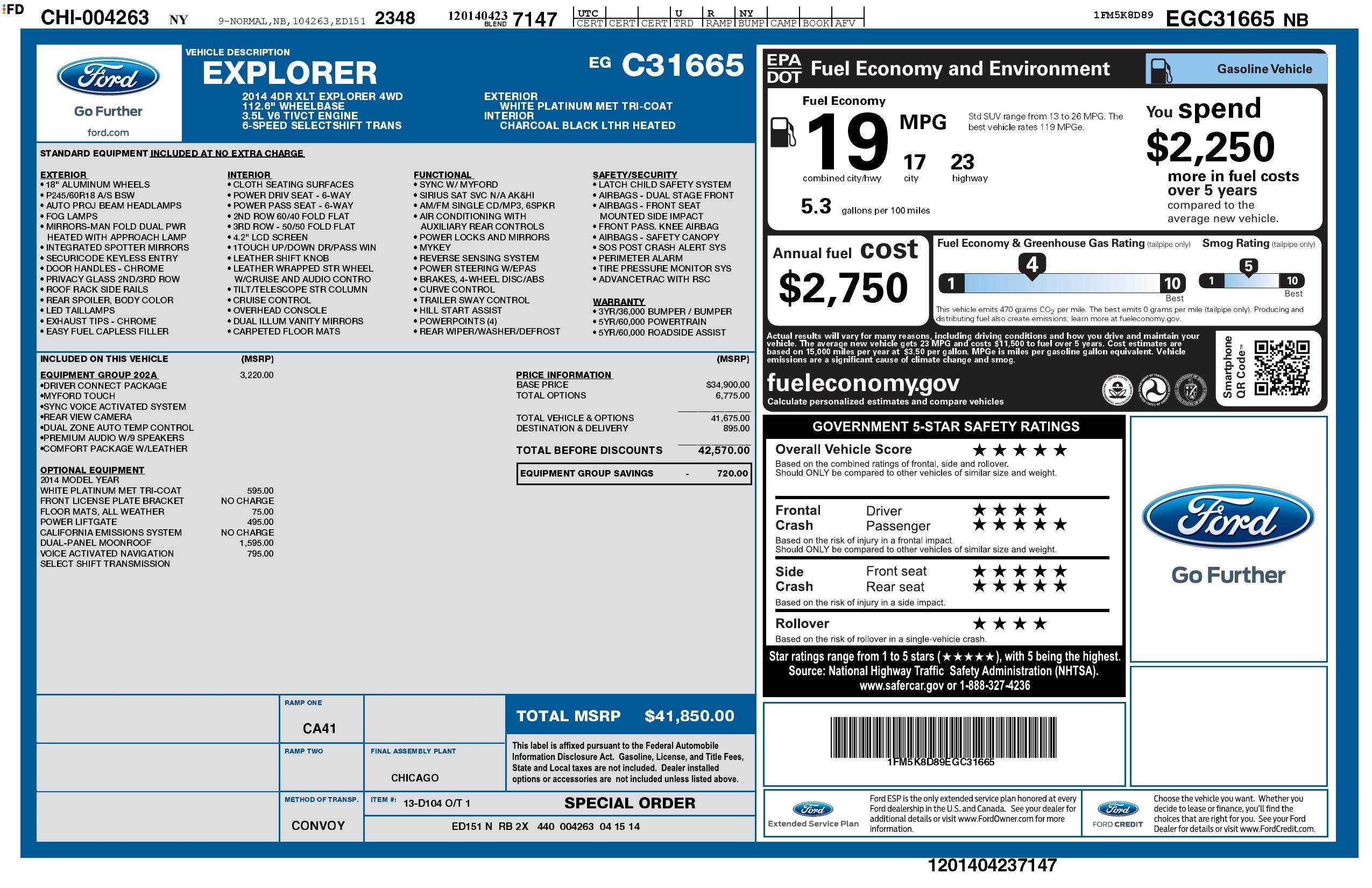 2014 Ford Explorer 4 Wd 4dr Xlt