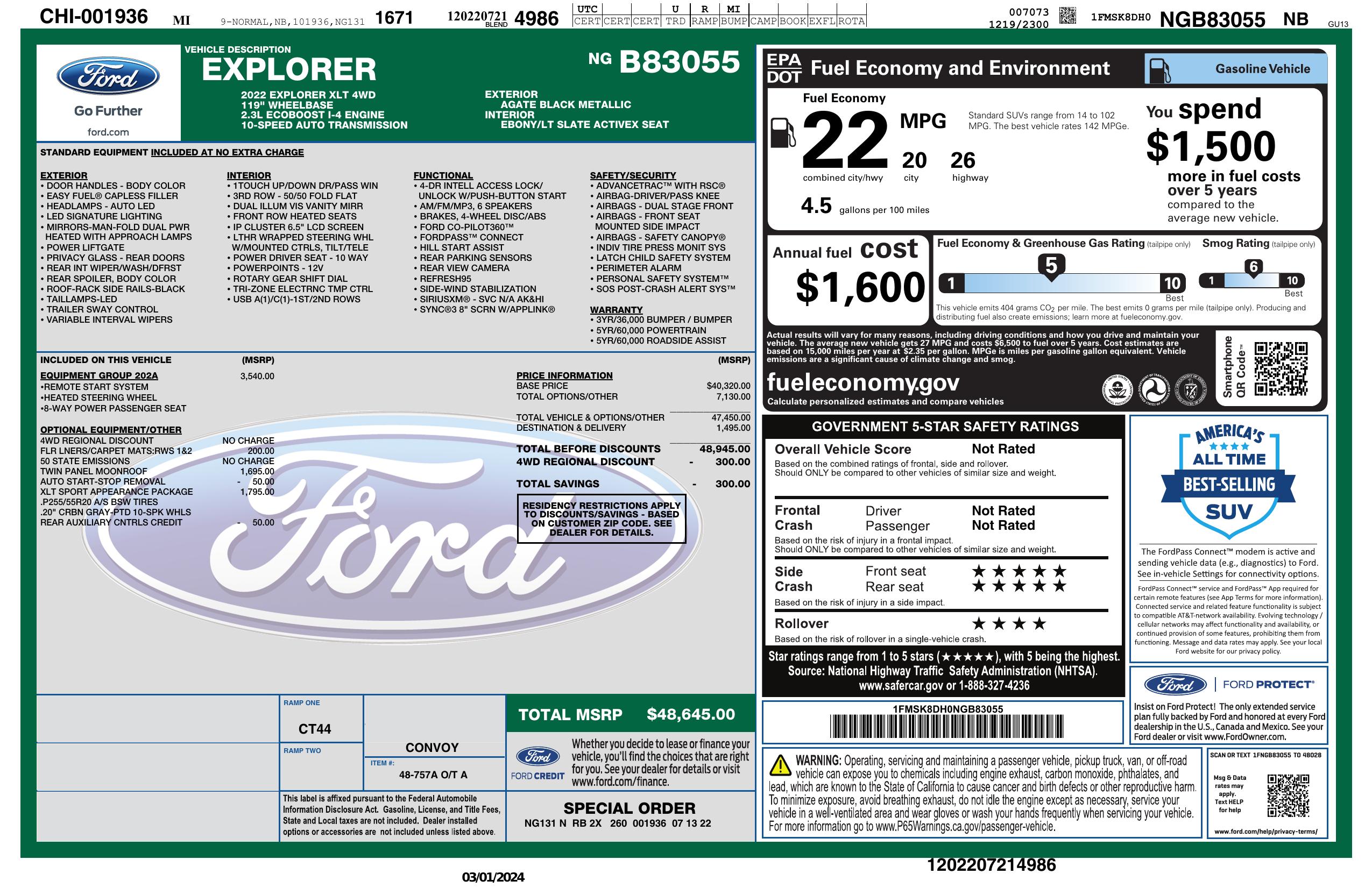 2022 Ford Explorer Awd Xlt 4dr Suv