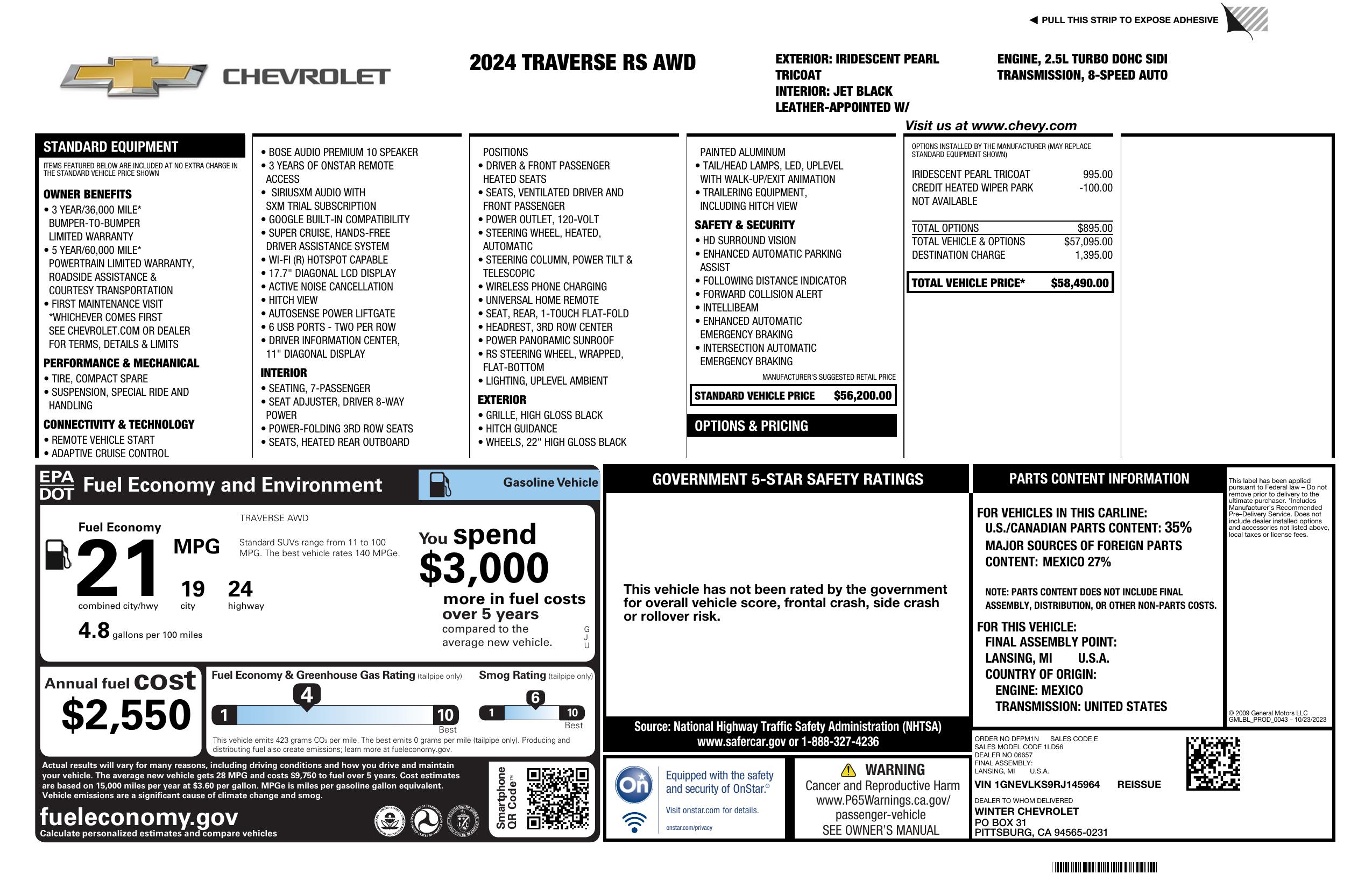 2024 Chevrolet Traverse 4dr Rs W/2 Rs