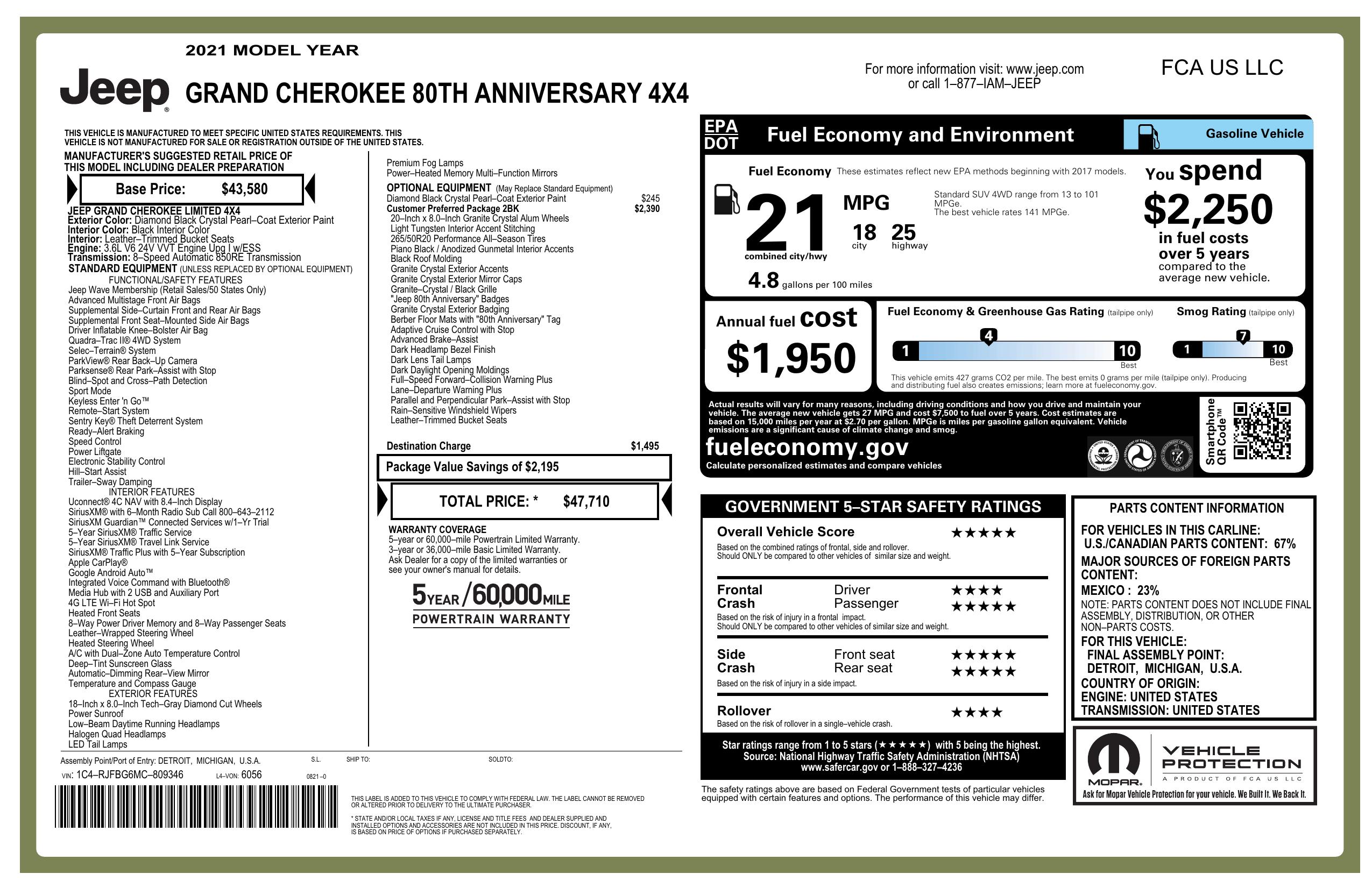 2021 Jeep Grand Cherokee 80th Anniversary 4x4