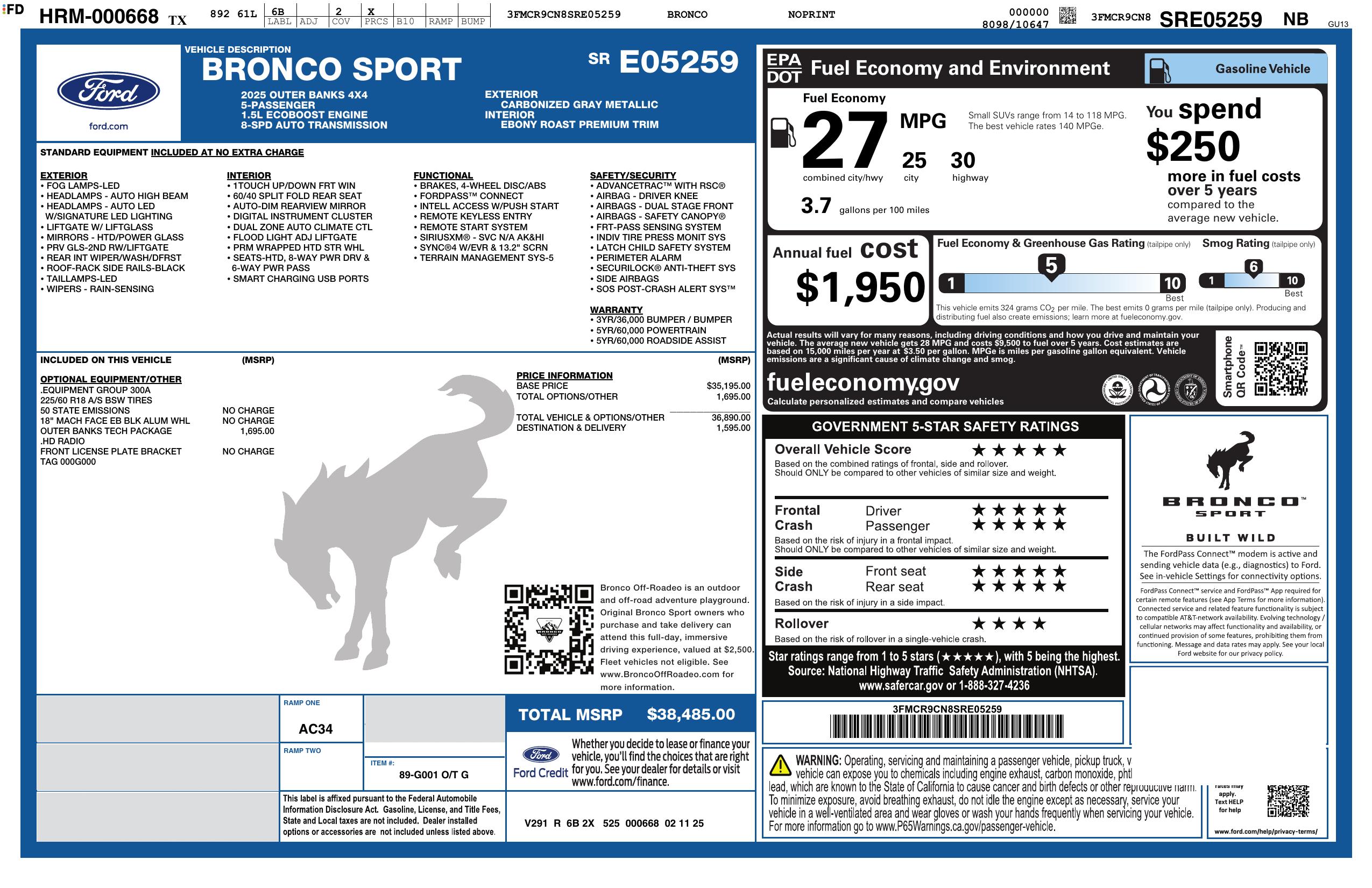 2025 Ford Bronco Sport Awd Outer Banks 4dr Suv