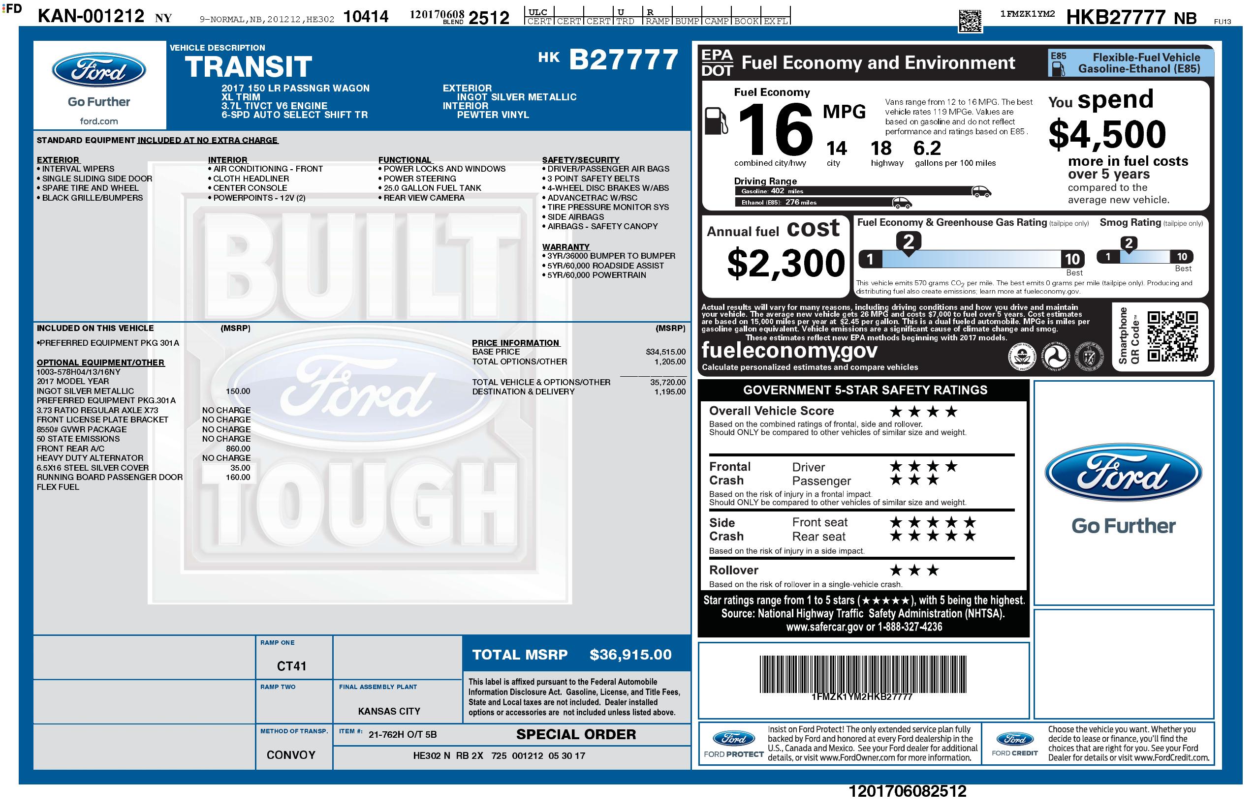 2017 Ford Transit Wagon T 150 130" Low Roof Sliding Rh Dr