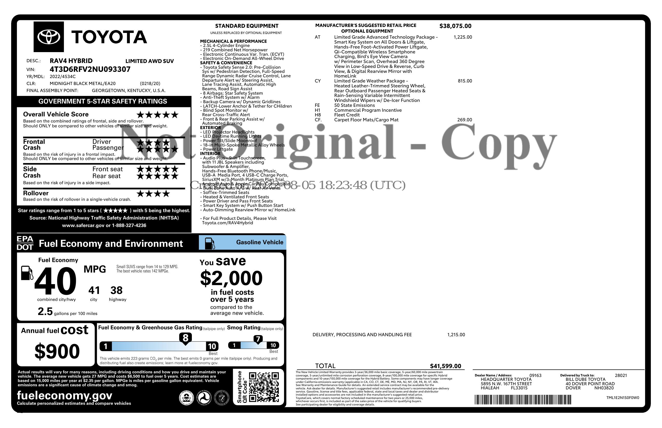 2022 Toyota Rav4 Hybrid Limited Awd (Natl)