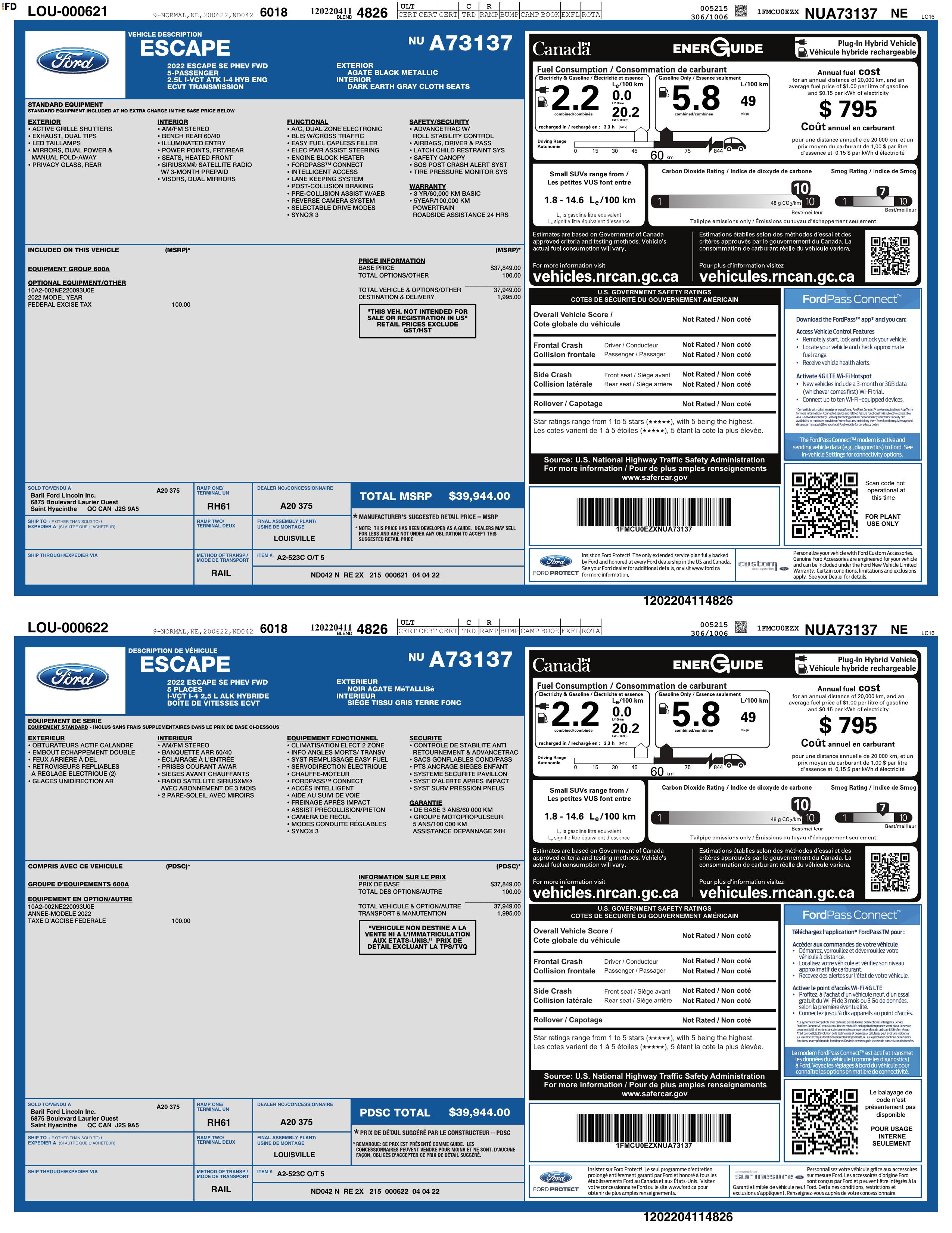 2022 Ford Escape Se Plug In Hybrid Fwd