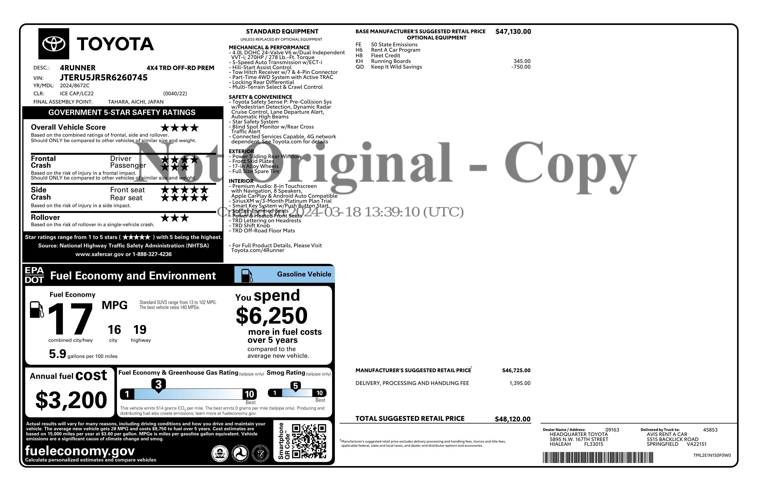 2024 Toyota 4 Runner Trd Off Road 4 Wd (Natl)