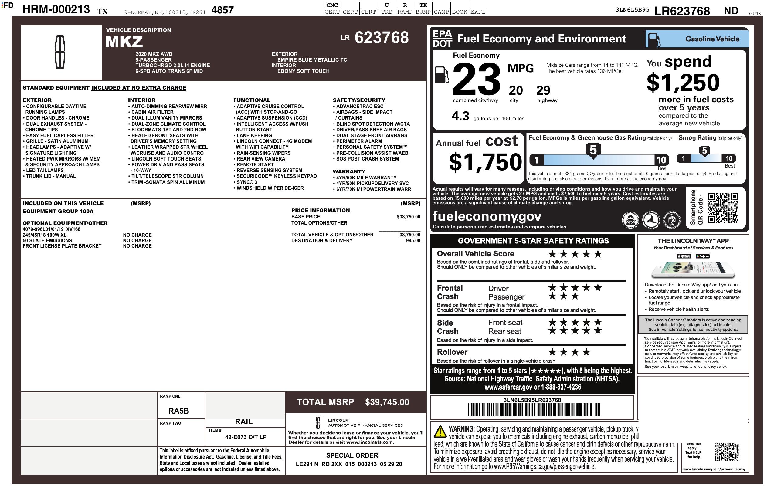 2020 Lincoln Mkz Standard Awd