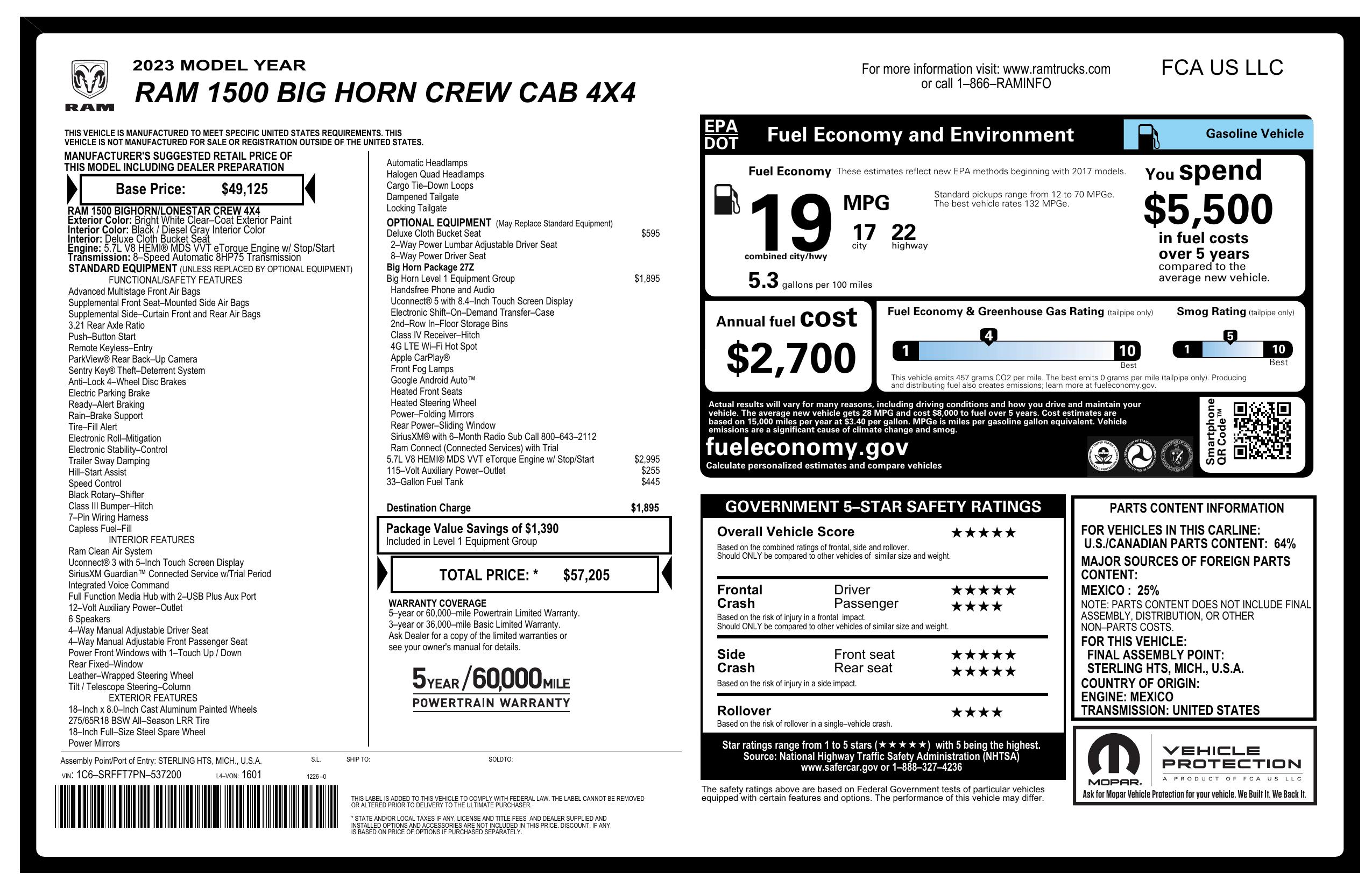 2023 Ram 1500 Big Horn 4x4 Crew Cab 5'7" Box