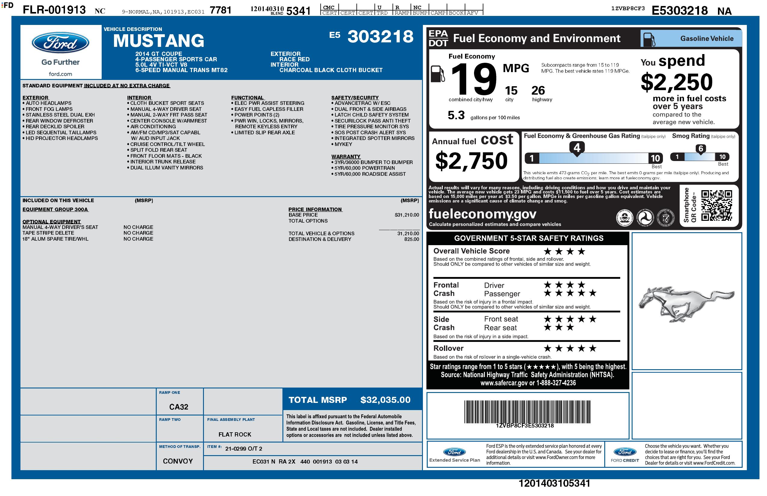2014 Ford Mustang Gt 2dr Fastback