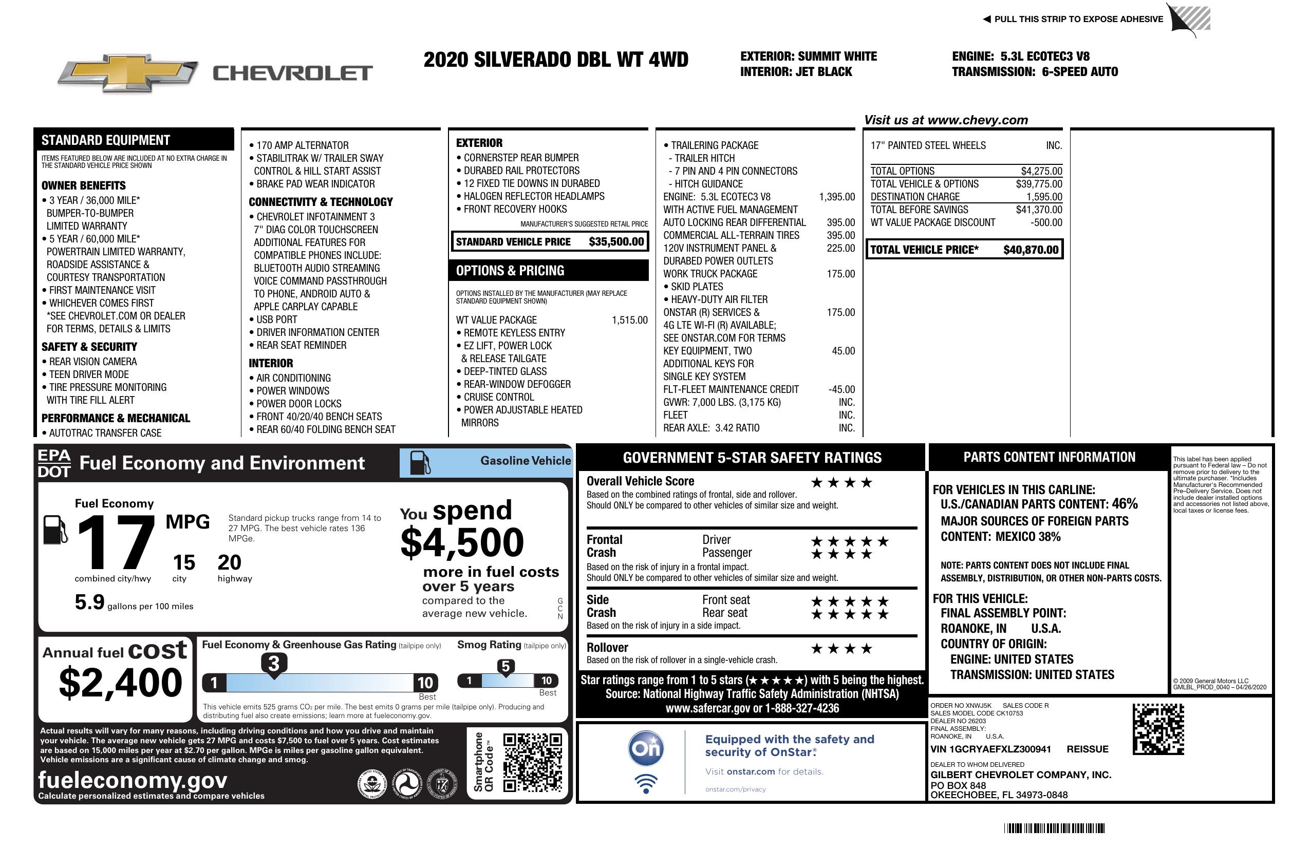 2020 Chevrolet Silverado 1500 4 Wd Double Cab 147" Work Truck