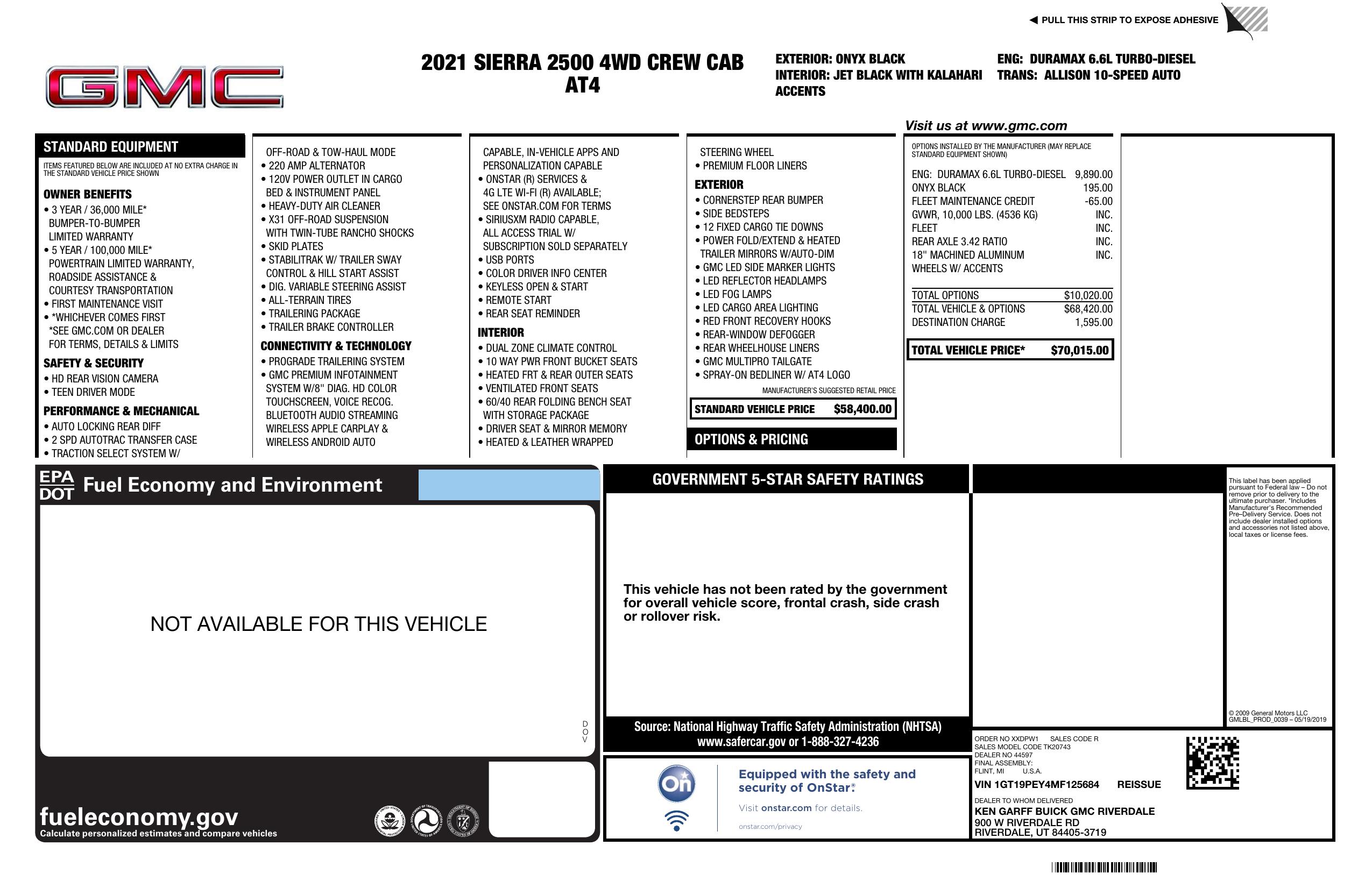 2021 GMC Sierra 2500 Hd 4 Wd Crew Cab 159" At4