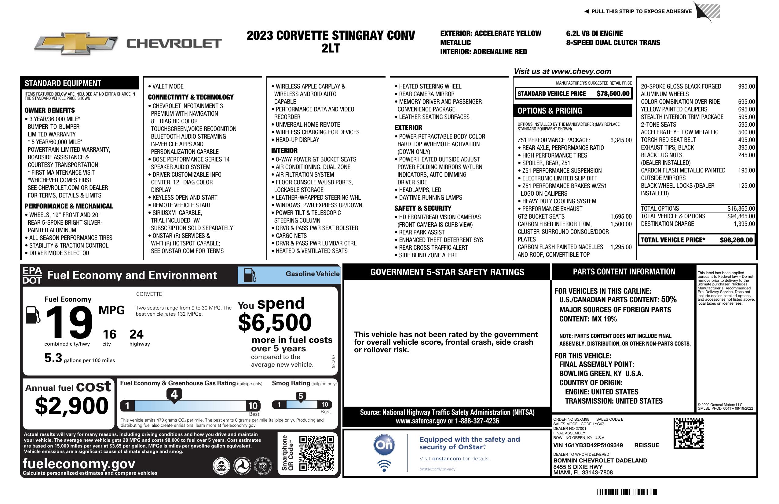 2023 Chevrolet Corvette 2dr Stingray Conv W/2 Lt
