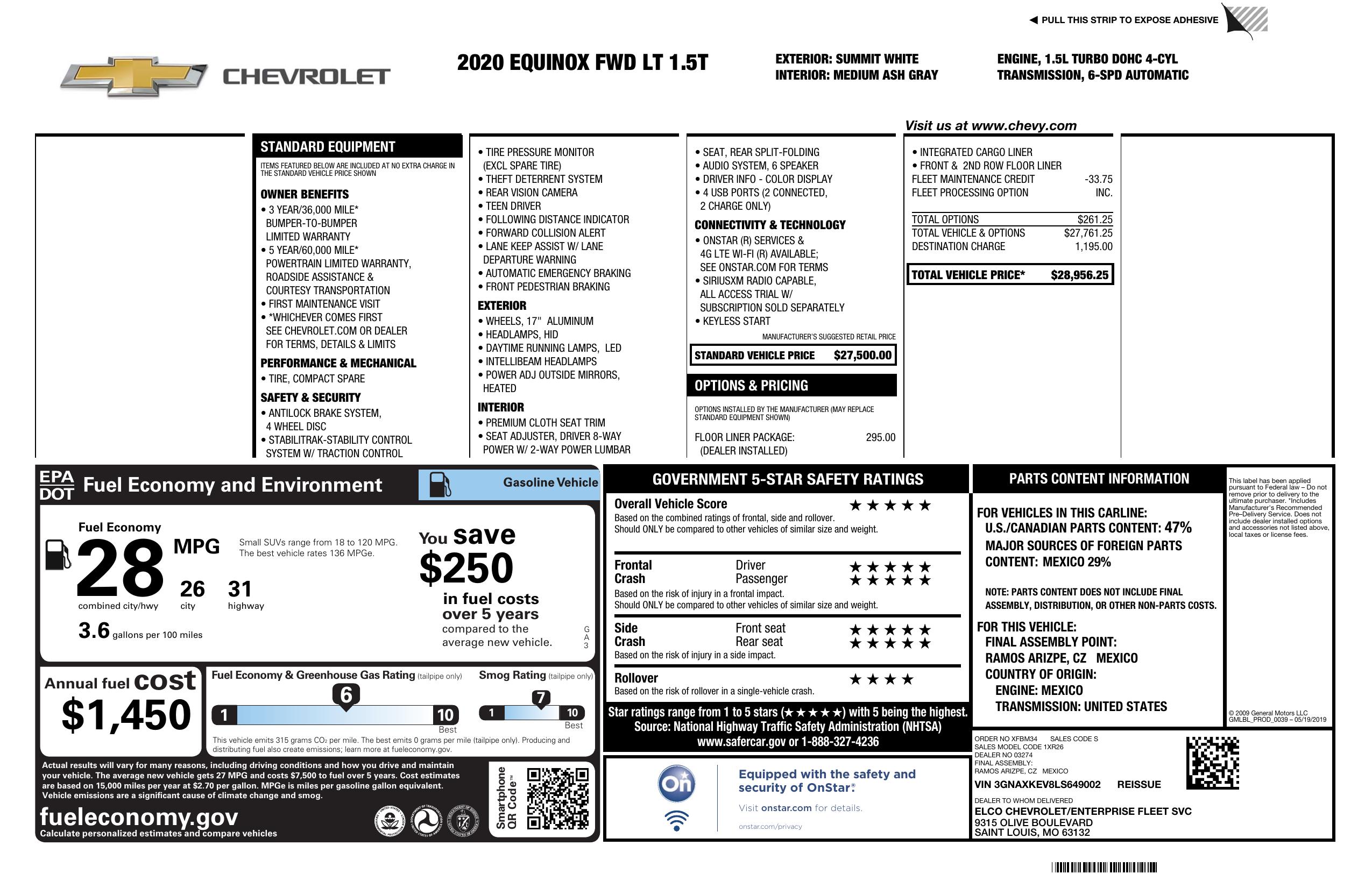 2020 Chevrolet Equinox Fwd 4dr Lt W/1 Lt
