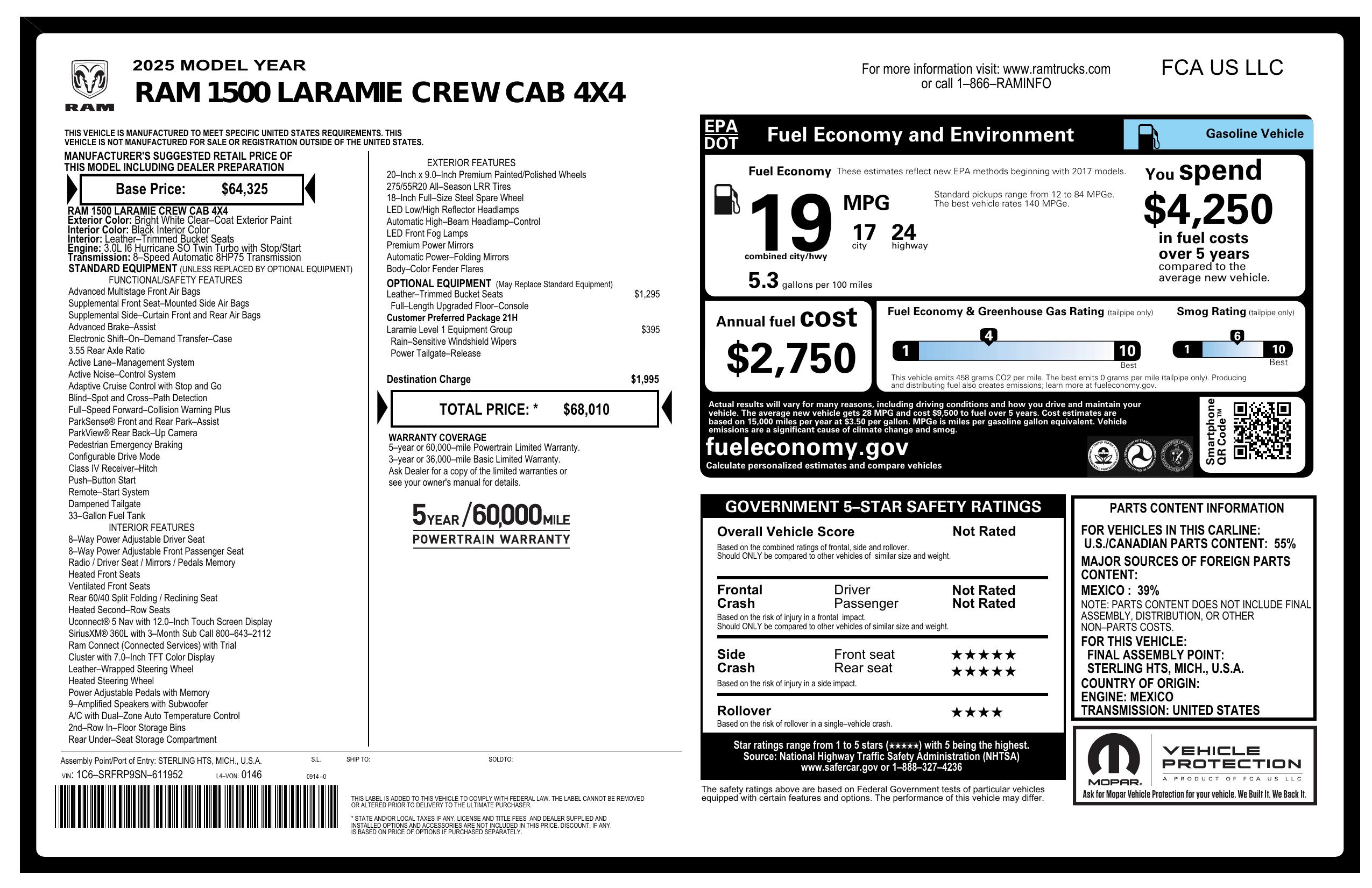 2025 Ram 1500 Laramie 4x4 Crew Cab 6'4" Box