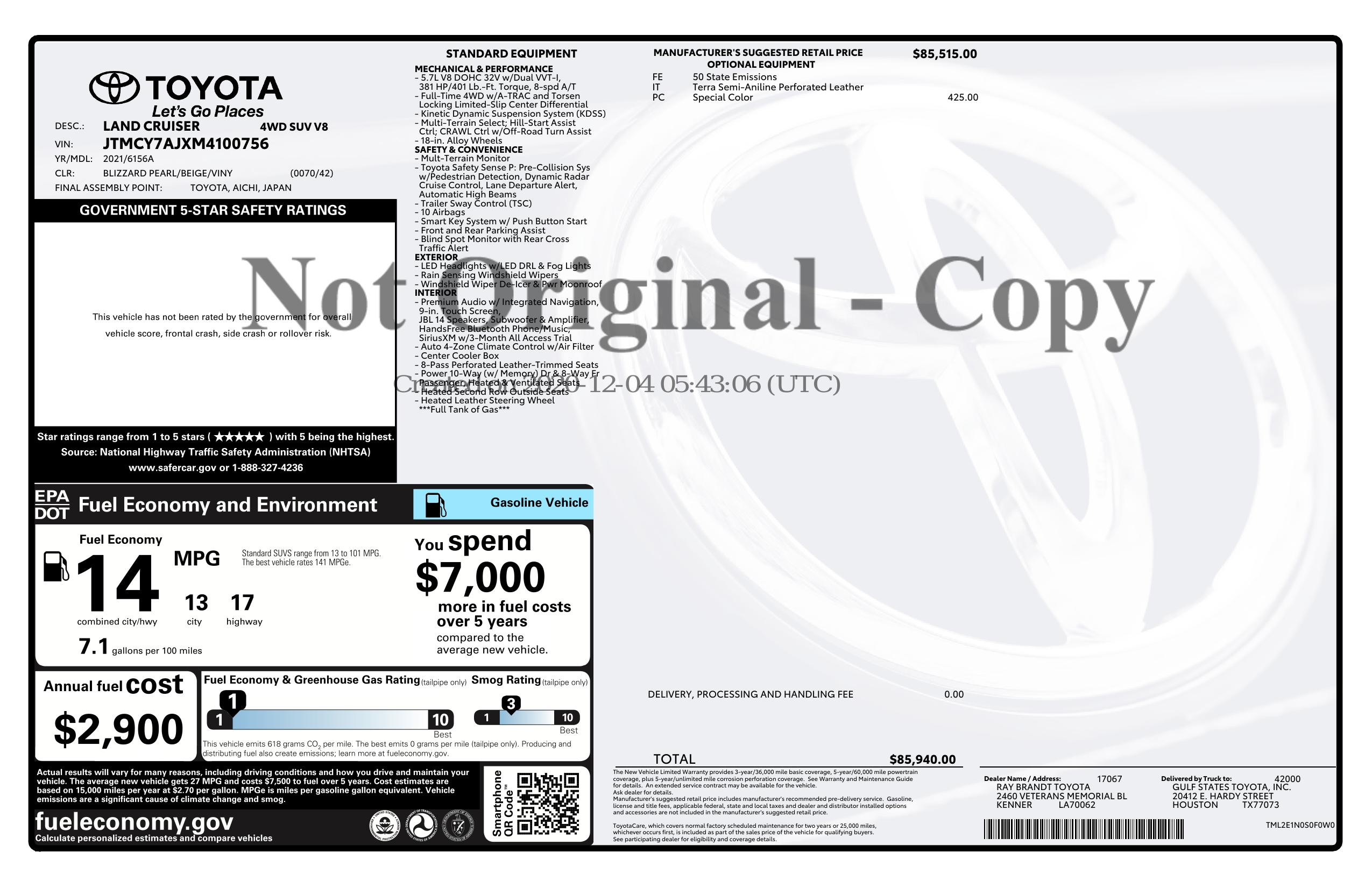 2021 Toyota Land Cruiser 4 Wd (Natl)