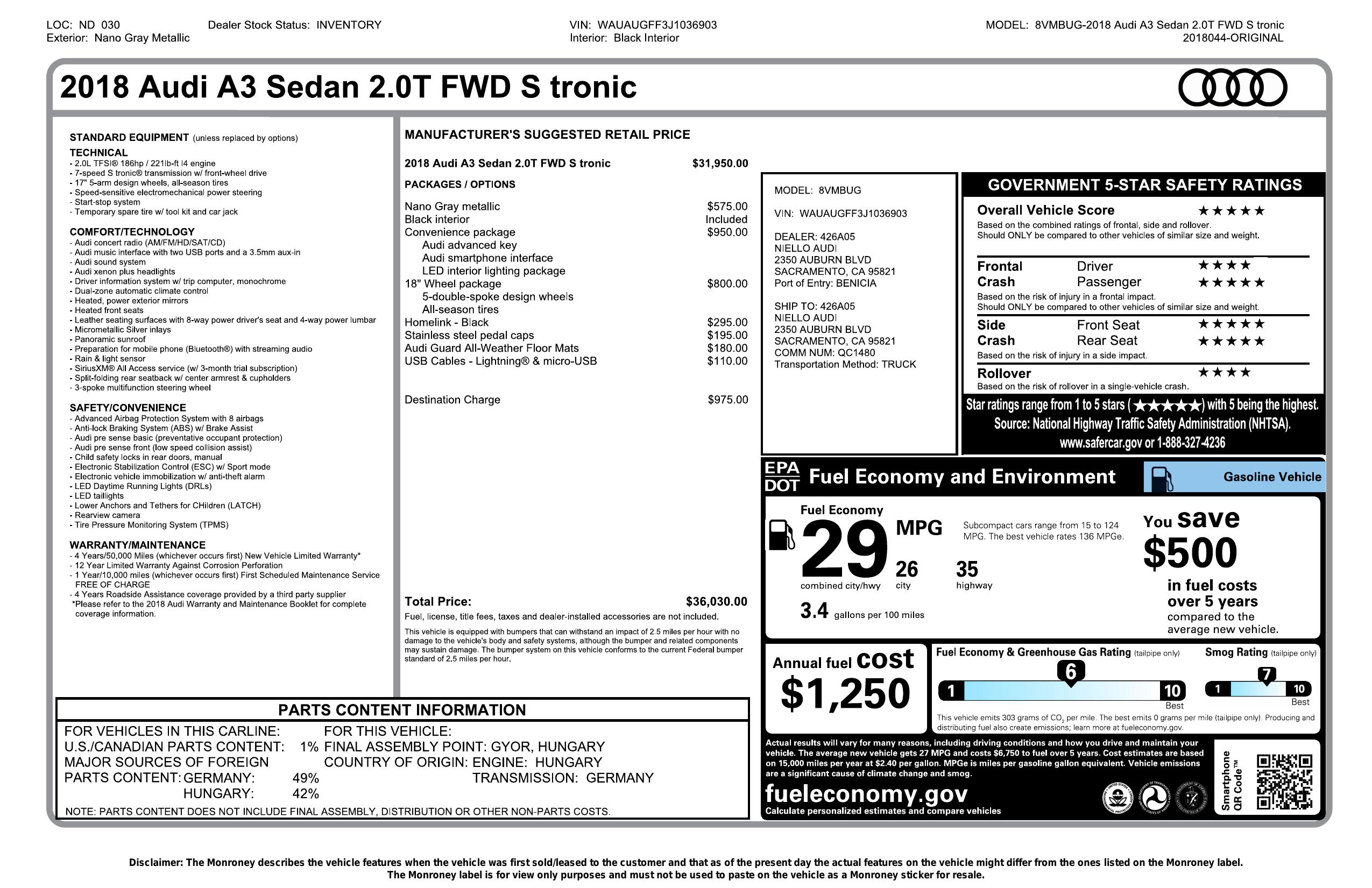2018 Audi A3 Sedan 2.0 Tfsi Premium Fwd