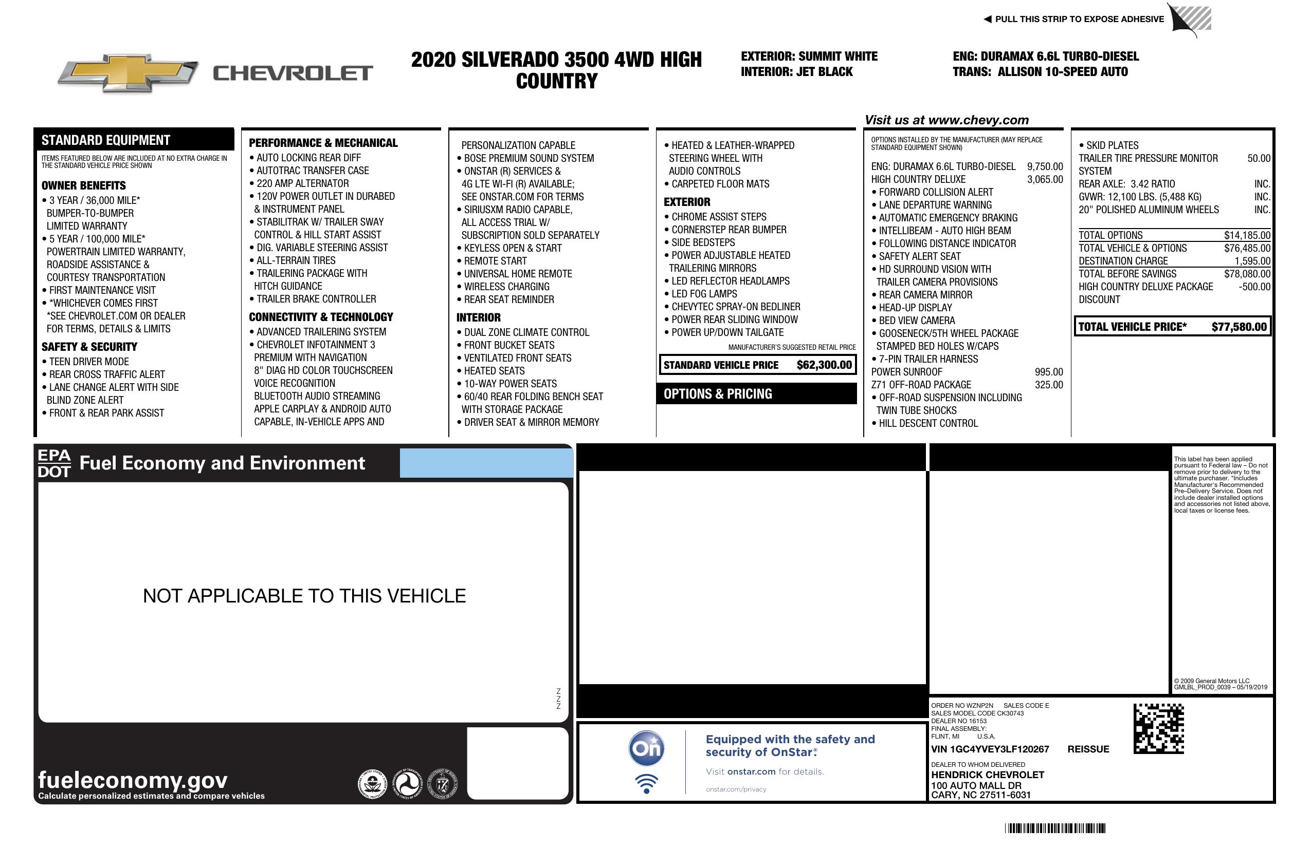 2020 Chevrolet Silverado 3500 Hd 4 Wd Crew Cab 159" High Country