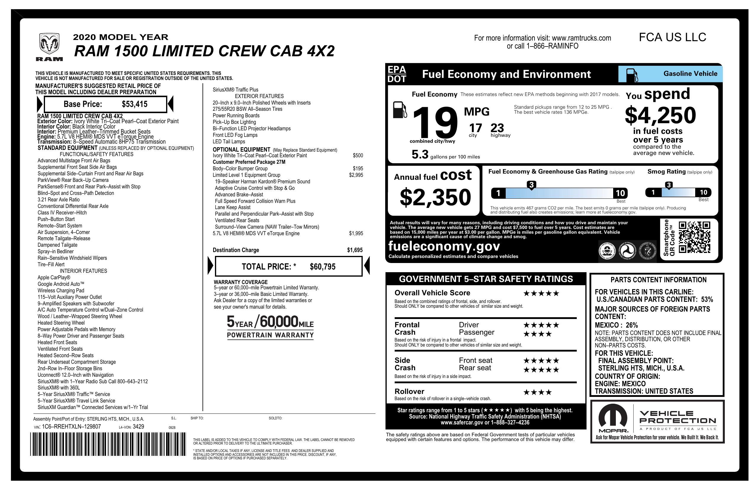 2020 Ram 1500 Limited 4x2 Crew Cab 5'7" Box