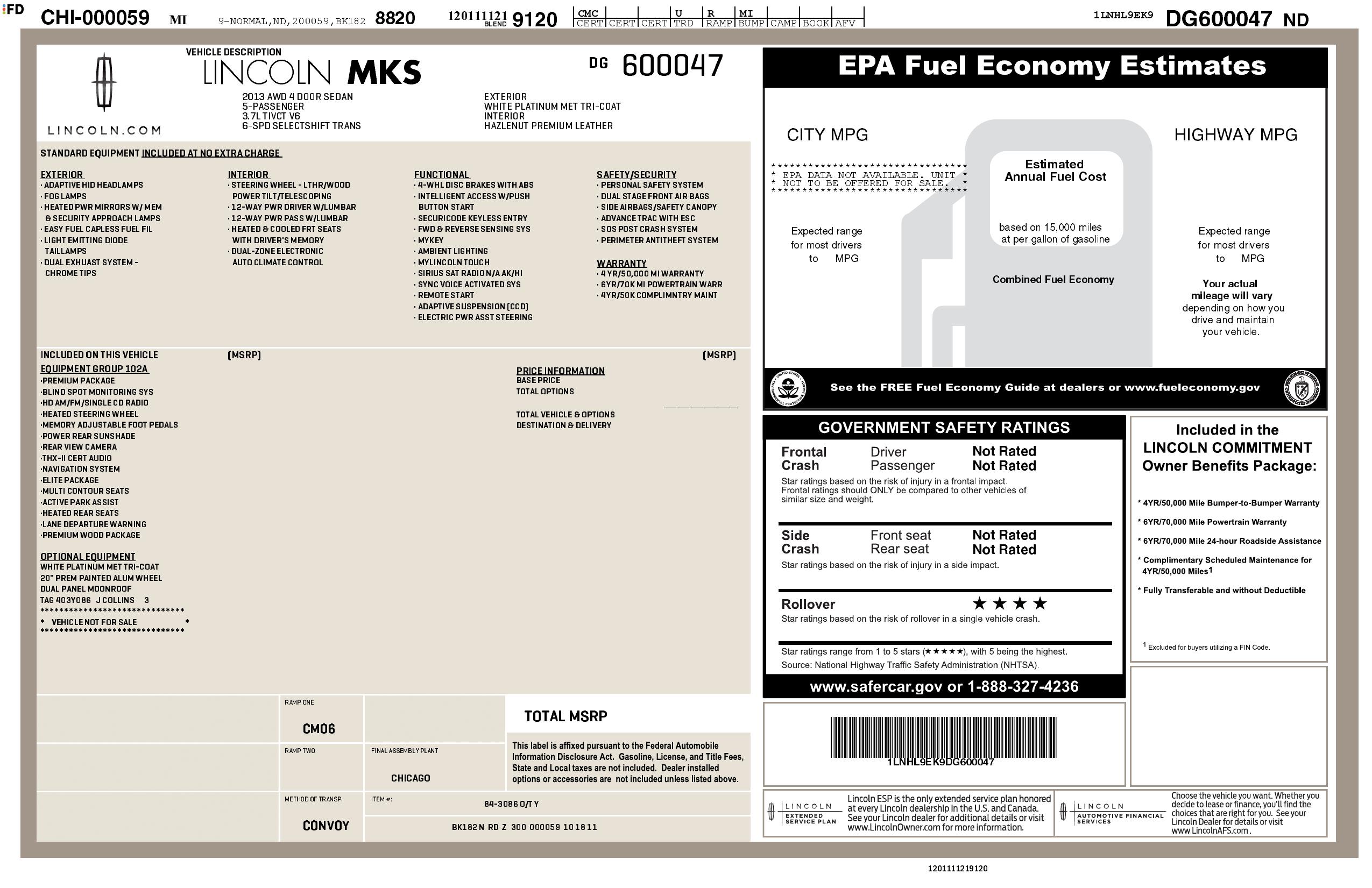 2013 Lincoln Mks 4dr Sdn 3.7 L Awd
