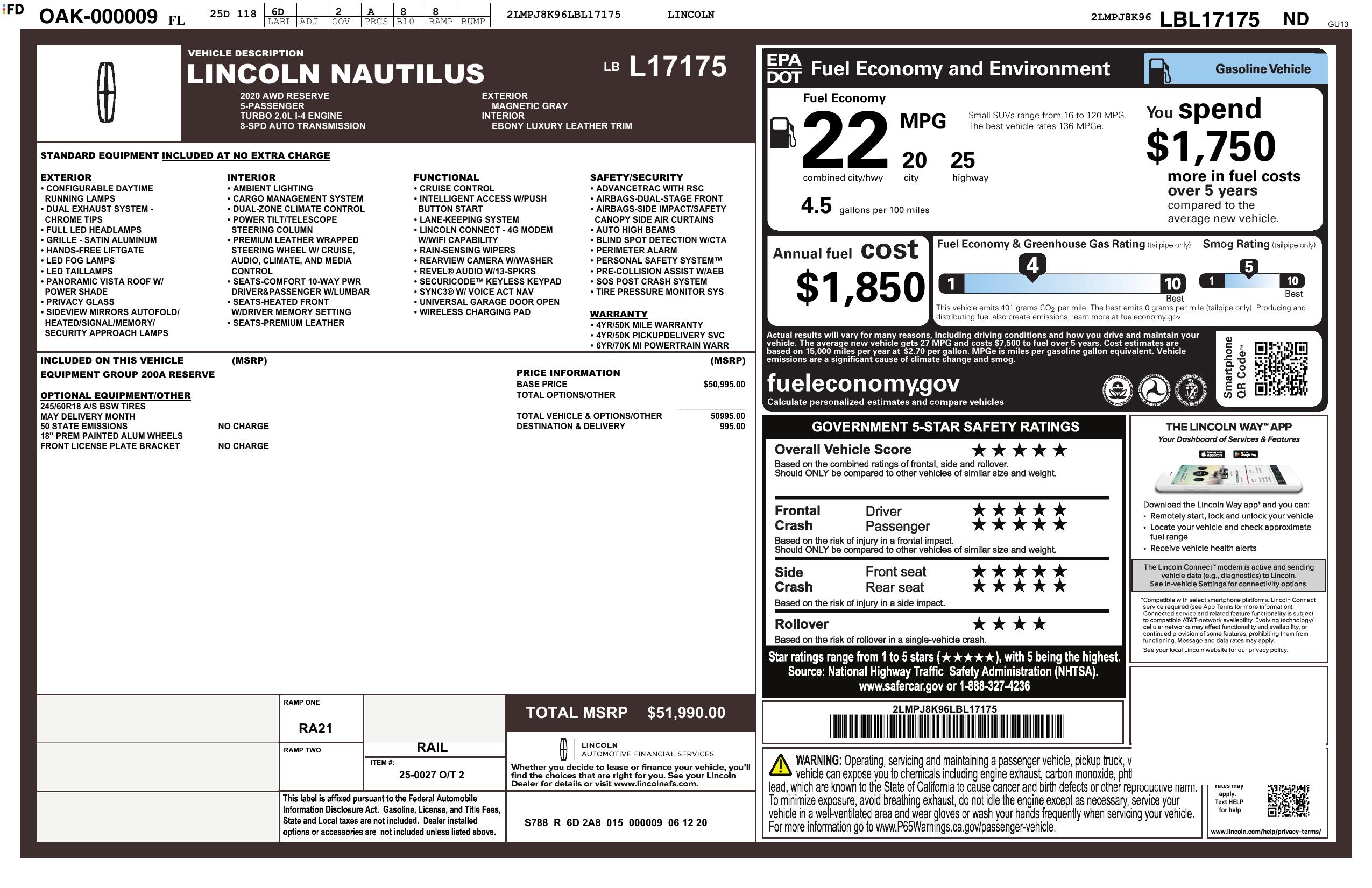 2020 Lincoln Nautilus Reserve Awd