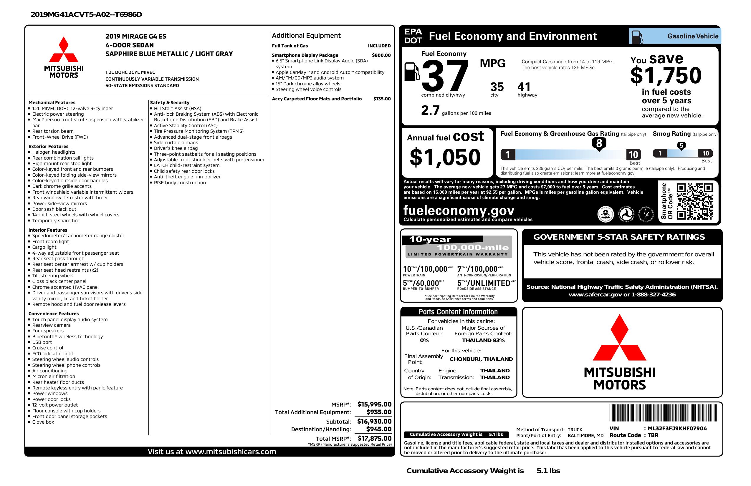 2019 Mitsubishi Mirage G4 Es