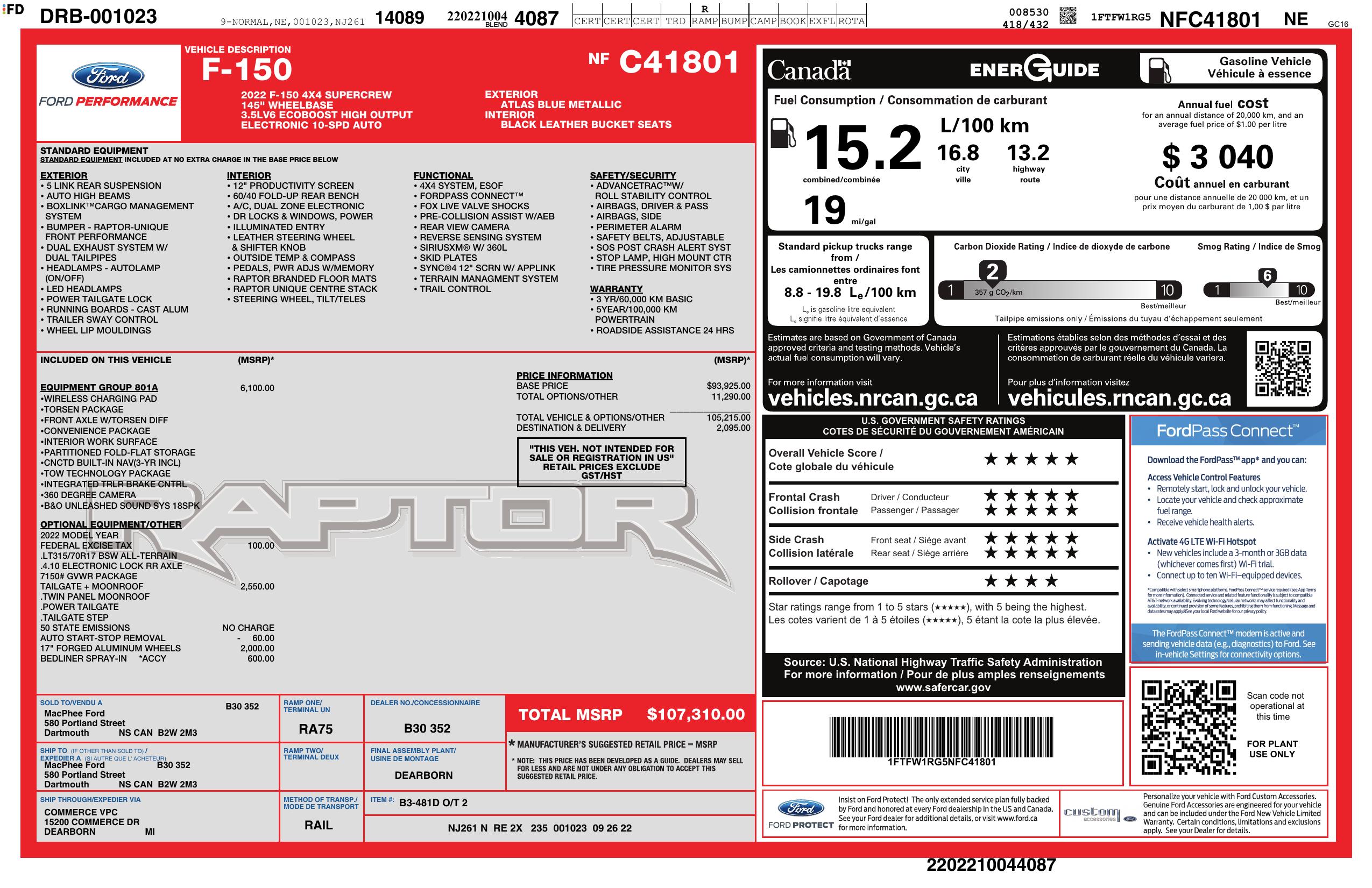 2022 Ford F 150 Raptor 4 Wd Super Crew 5.5' Box
