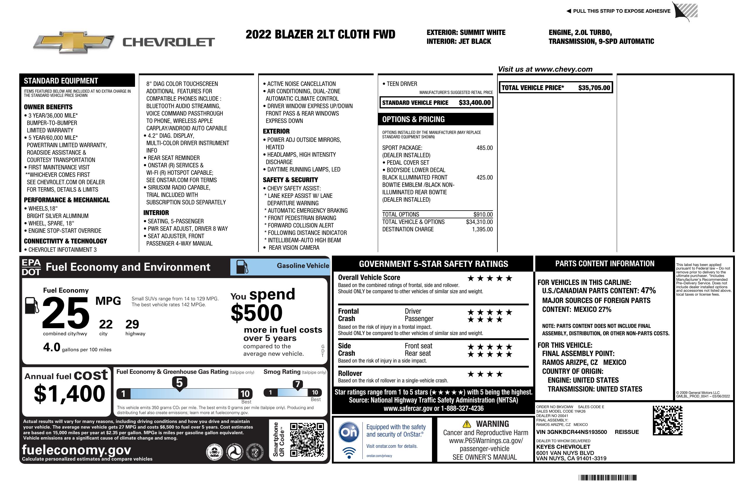 2022 Chevrolet Blazer Fwd 4dr Lt W/2 Lt