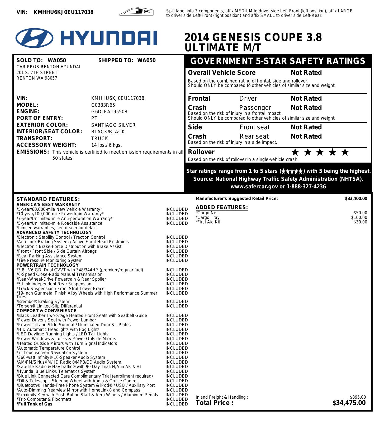 2014 Hyundai Genesis Coupe 2dr V6 3.8 L Man Ultimate