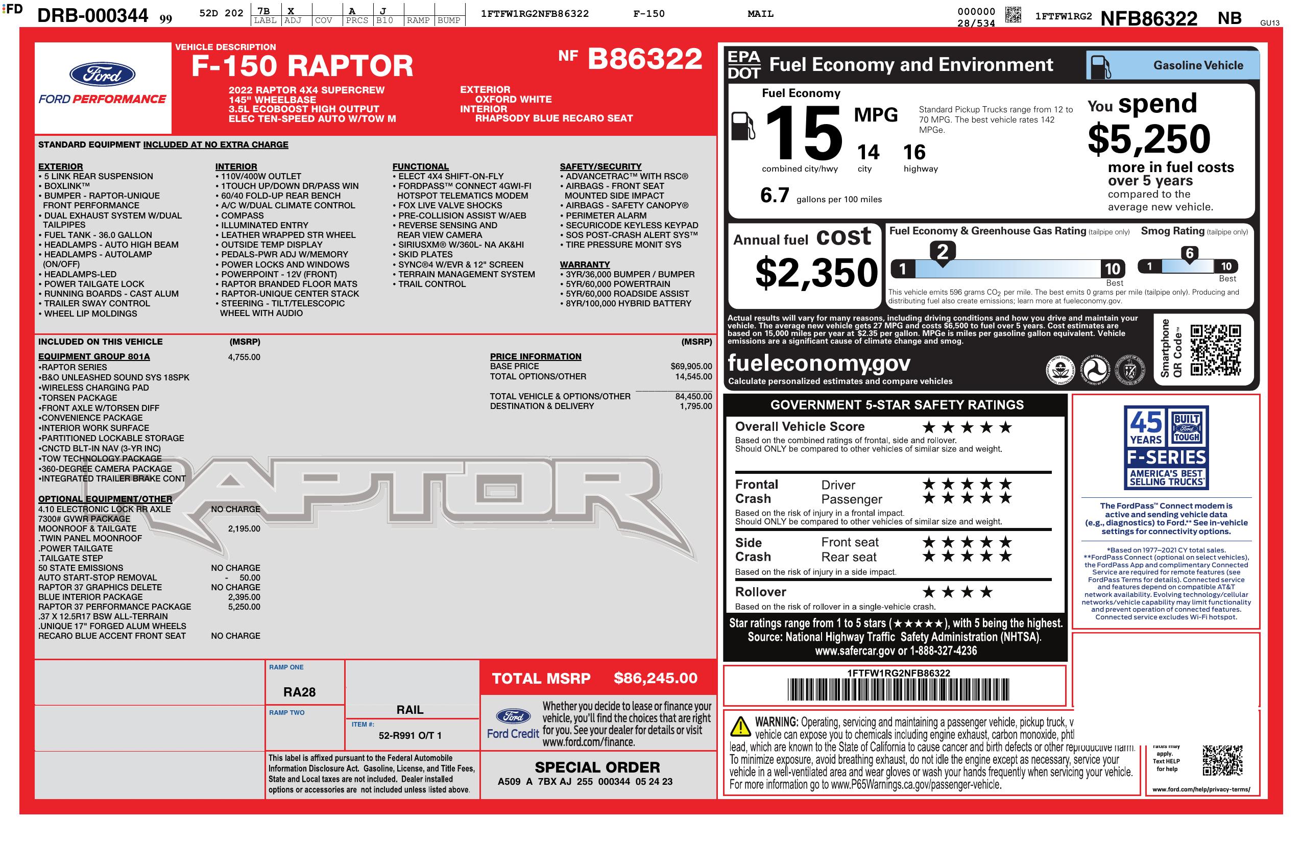 2022 Ford F 150 Raptor 4 Wd Super Crew 5.5' Box