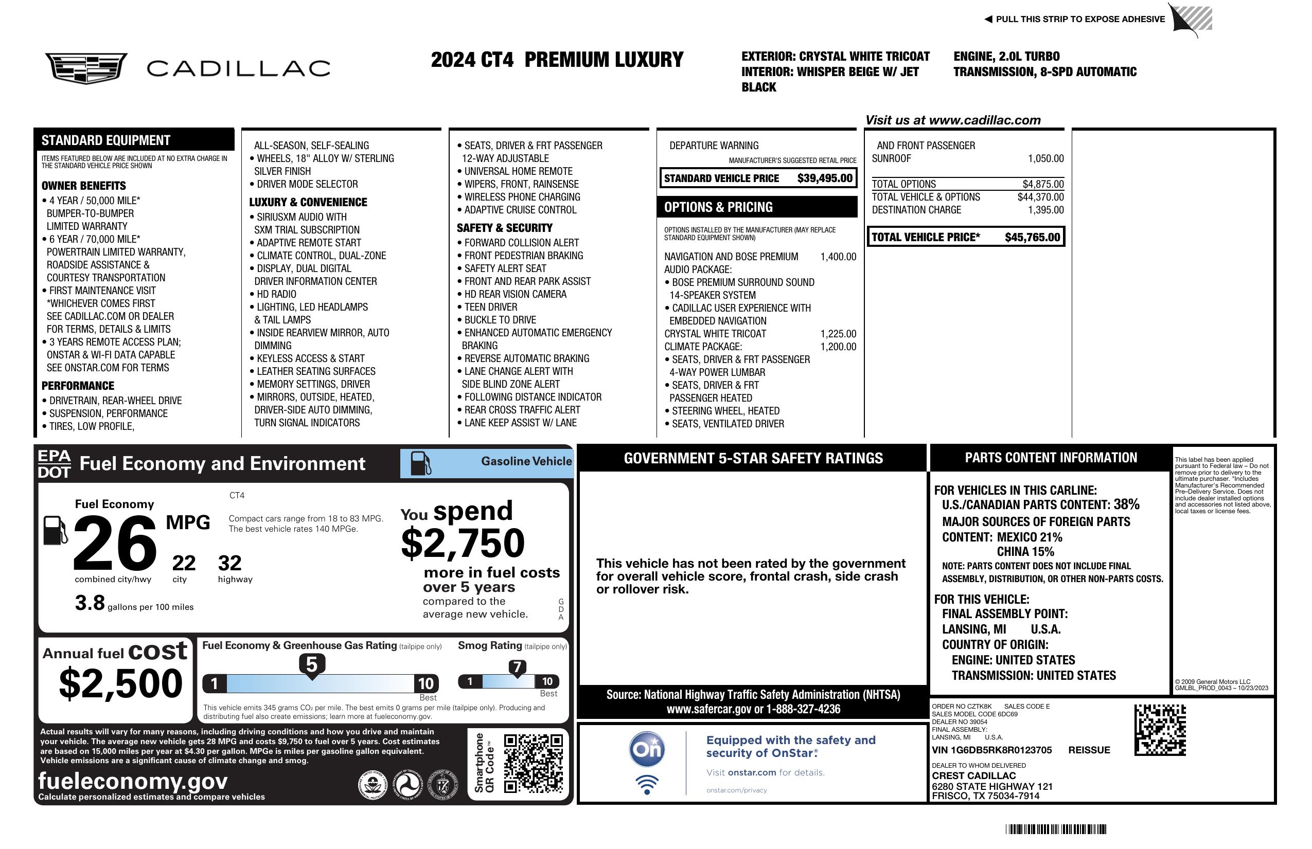 2024 Cadillac Ct4 4dr Sdn Premium Luxury