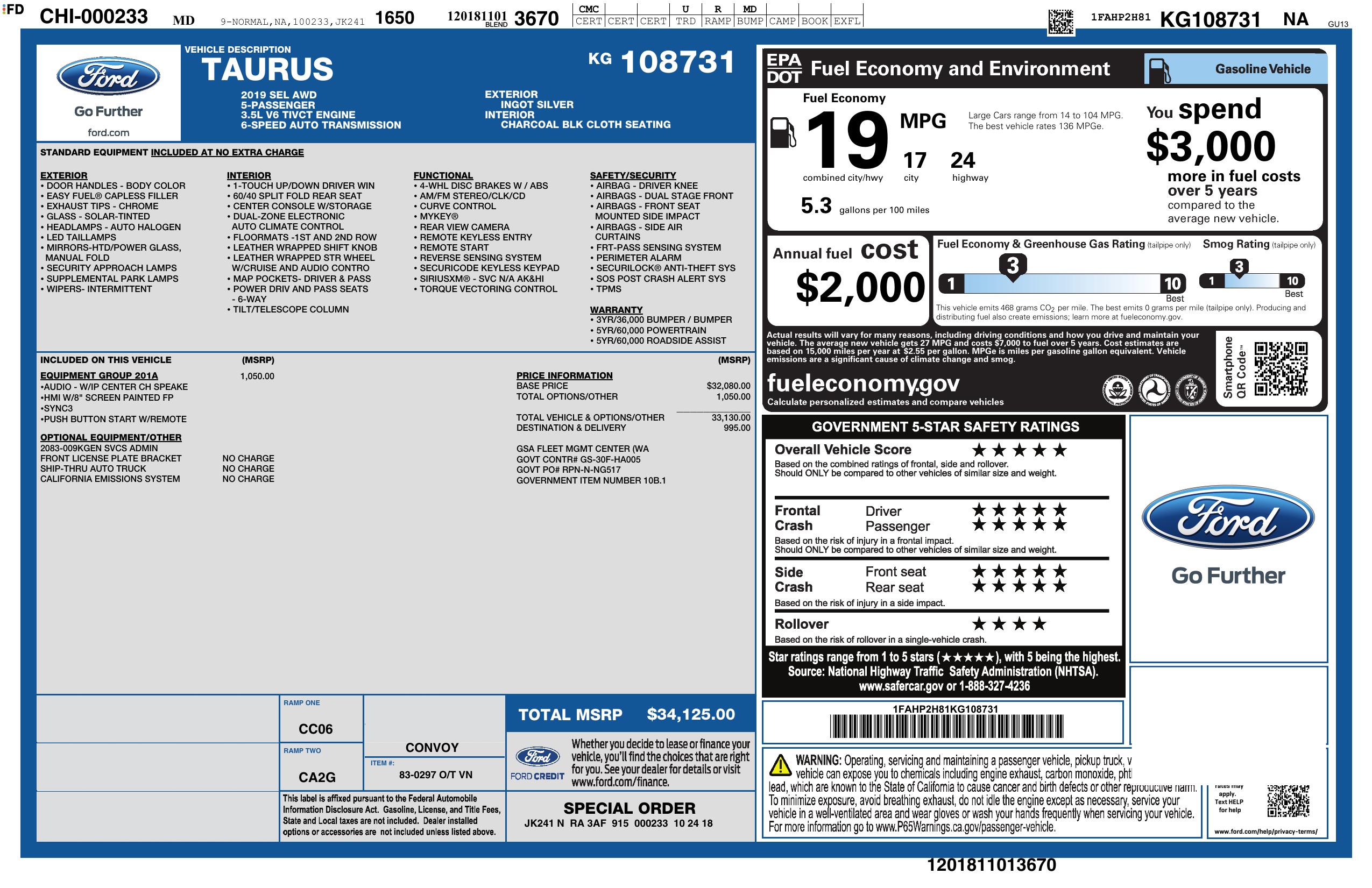 2019 Ford Taurus Sel Awd