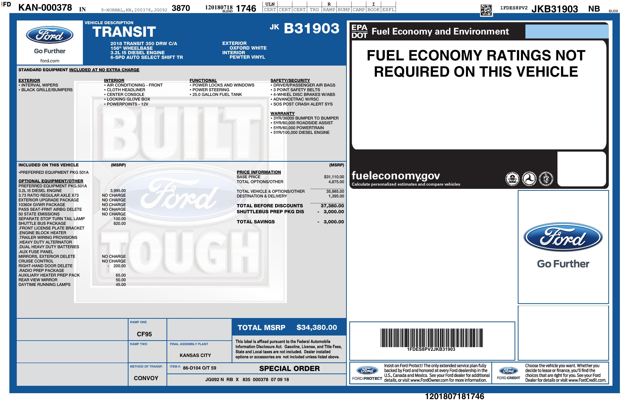 2018 Ford Transit Cutaway T 350 Drw 156" Wb 10360 Gvwr