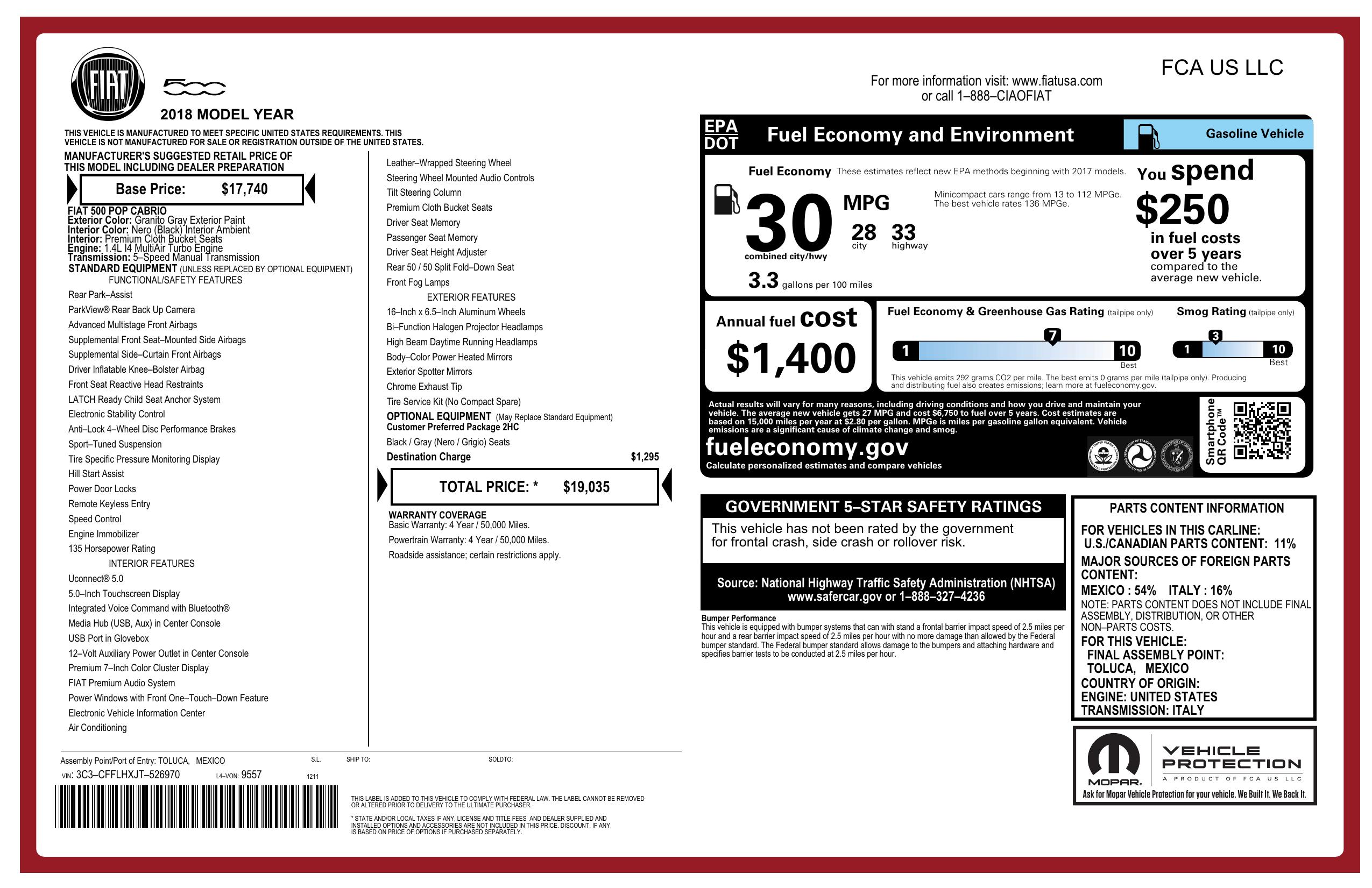 2018 Fiat 500c Pop Cabrio