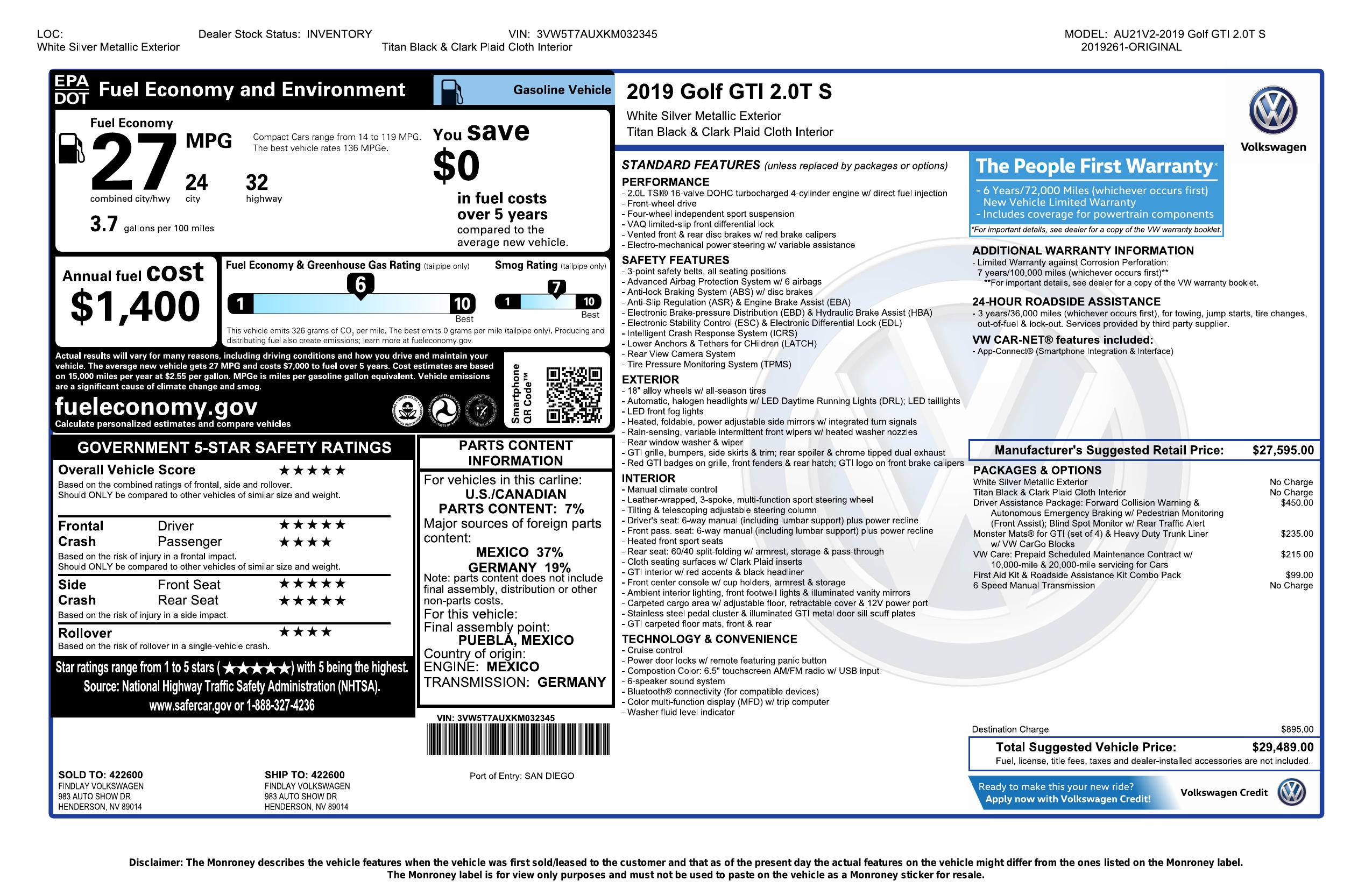 2019 Volkswagen Golf Gti 2.0 T Manual