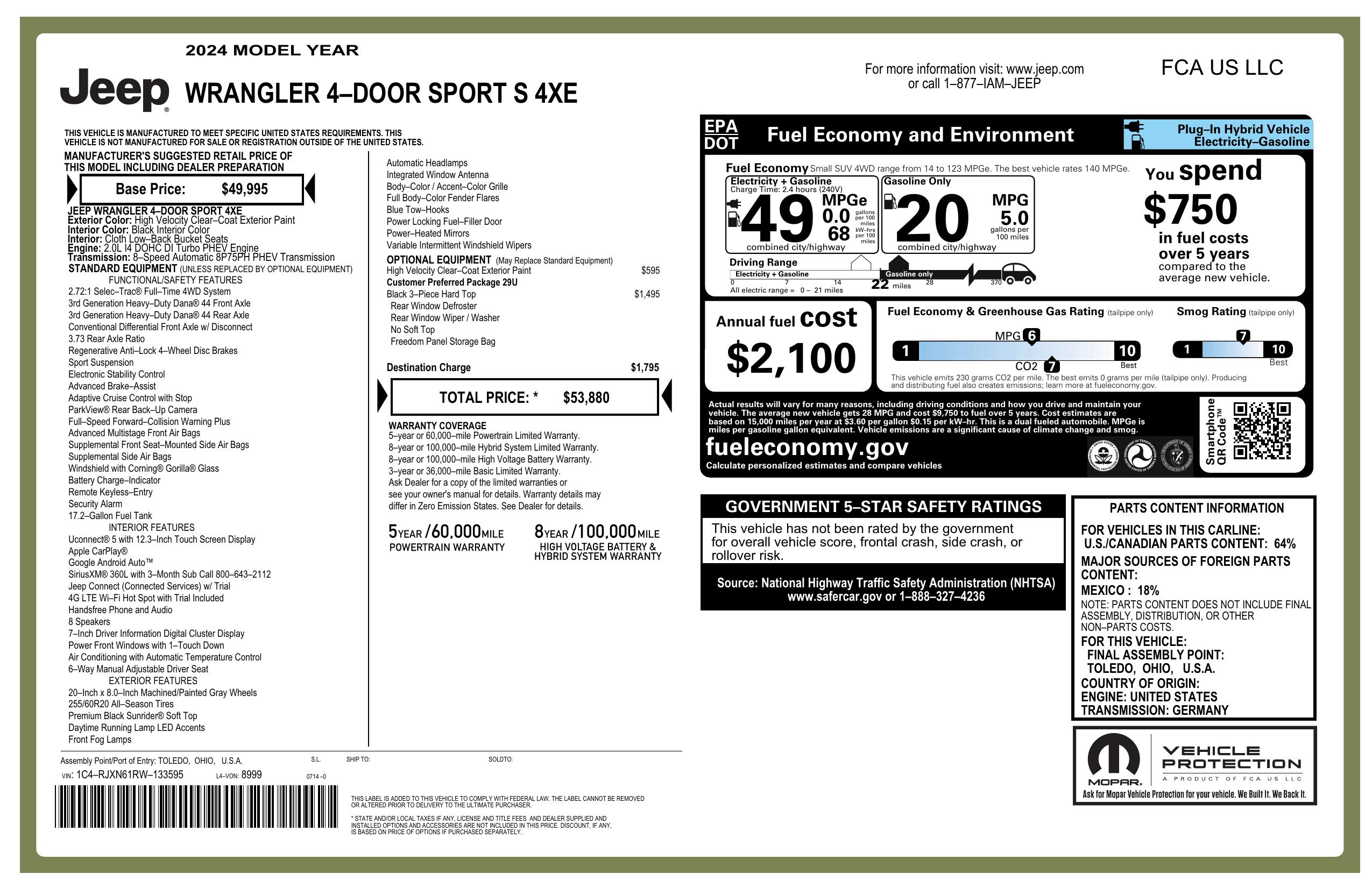 2024 Jeep Wrangler 4xe Sport S 4x4