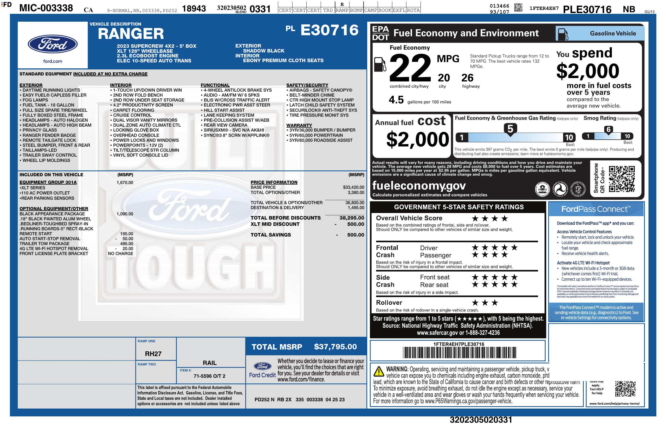 2023 Ford Ranger 2 Wd Super Crew 5' Box