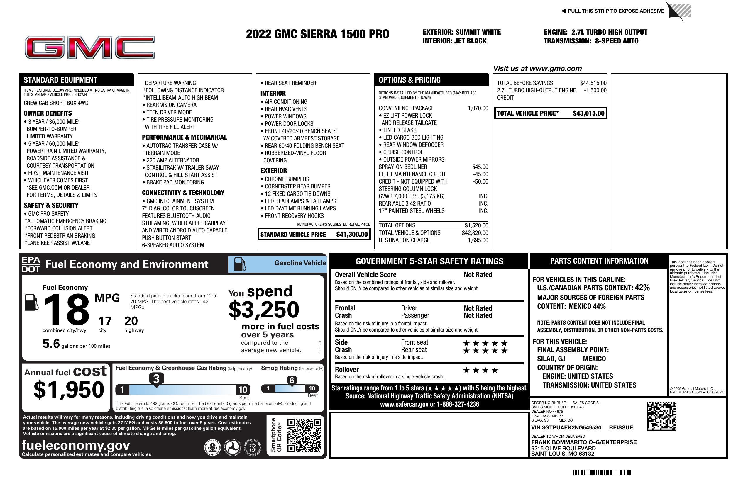 2022 GMC Sierra 1500 4 Wd Crew Cab 147" Pro