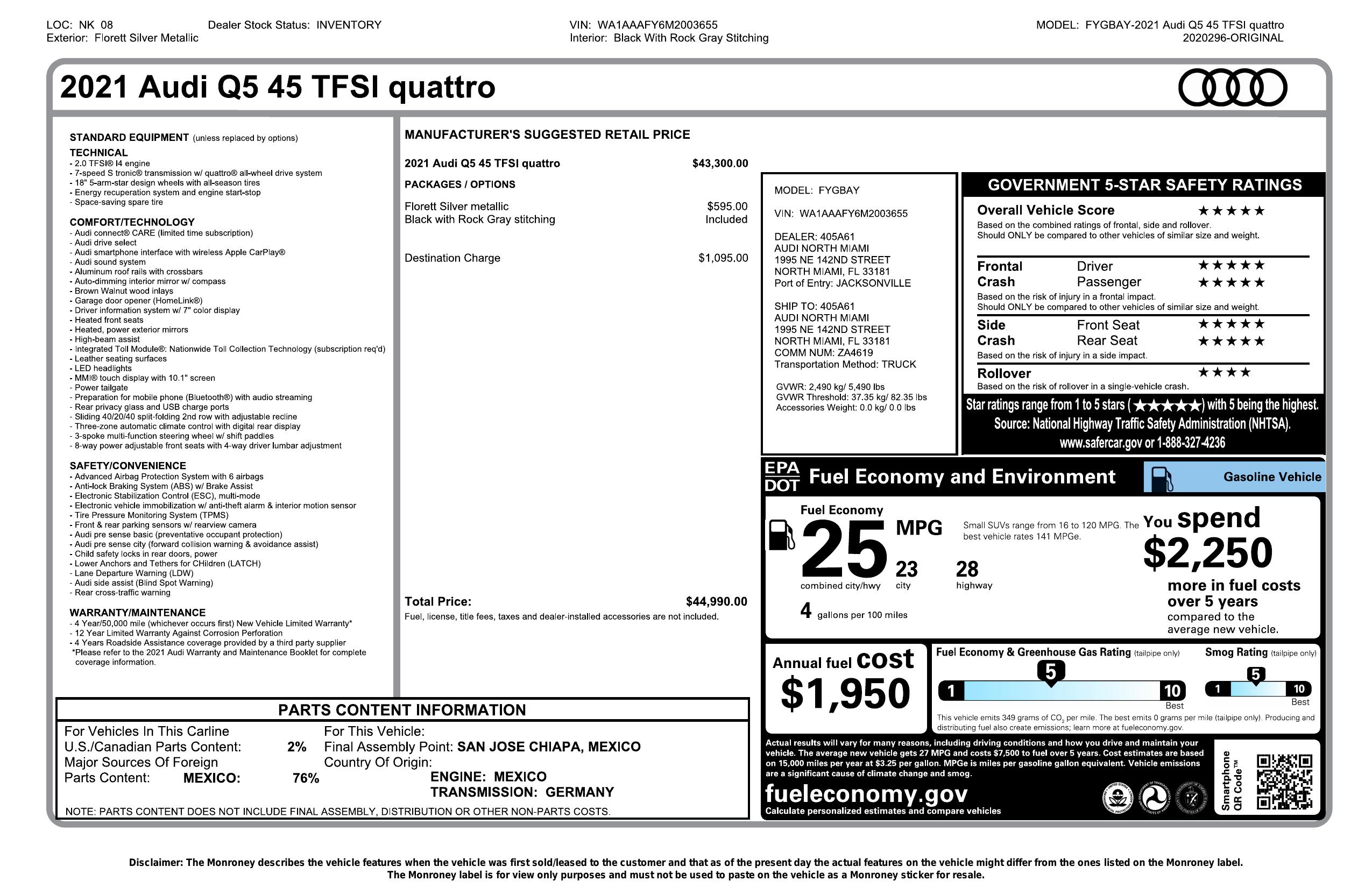 2021 Audi Q5 Premium 45 Tfsi Quattro