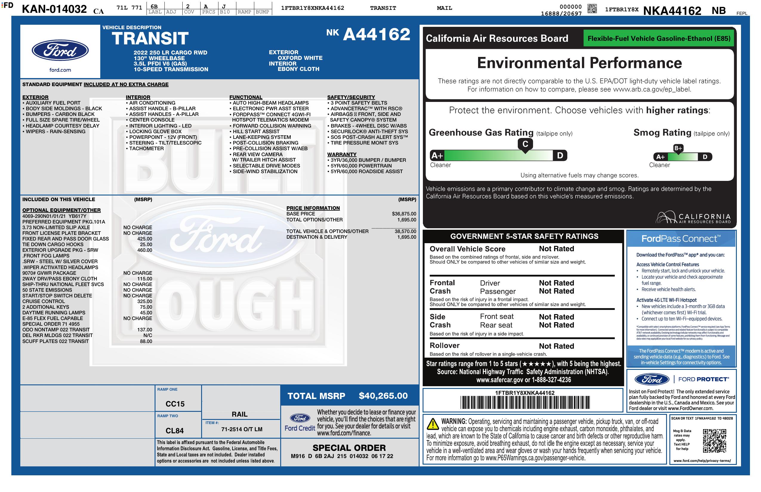2022 Ford Transit Cargo Van T 250 Low Rf 9070 Gvwr Rwd
