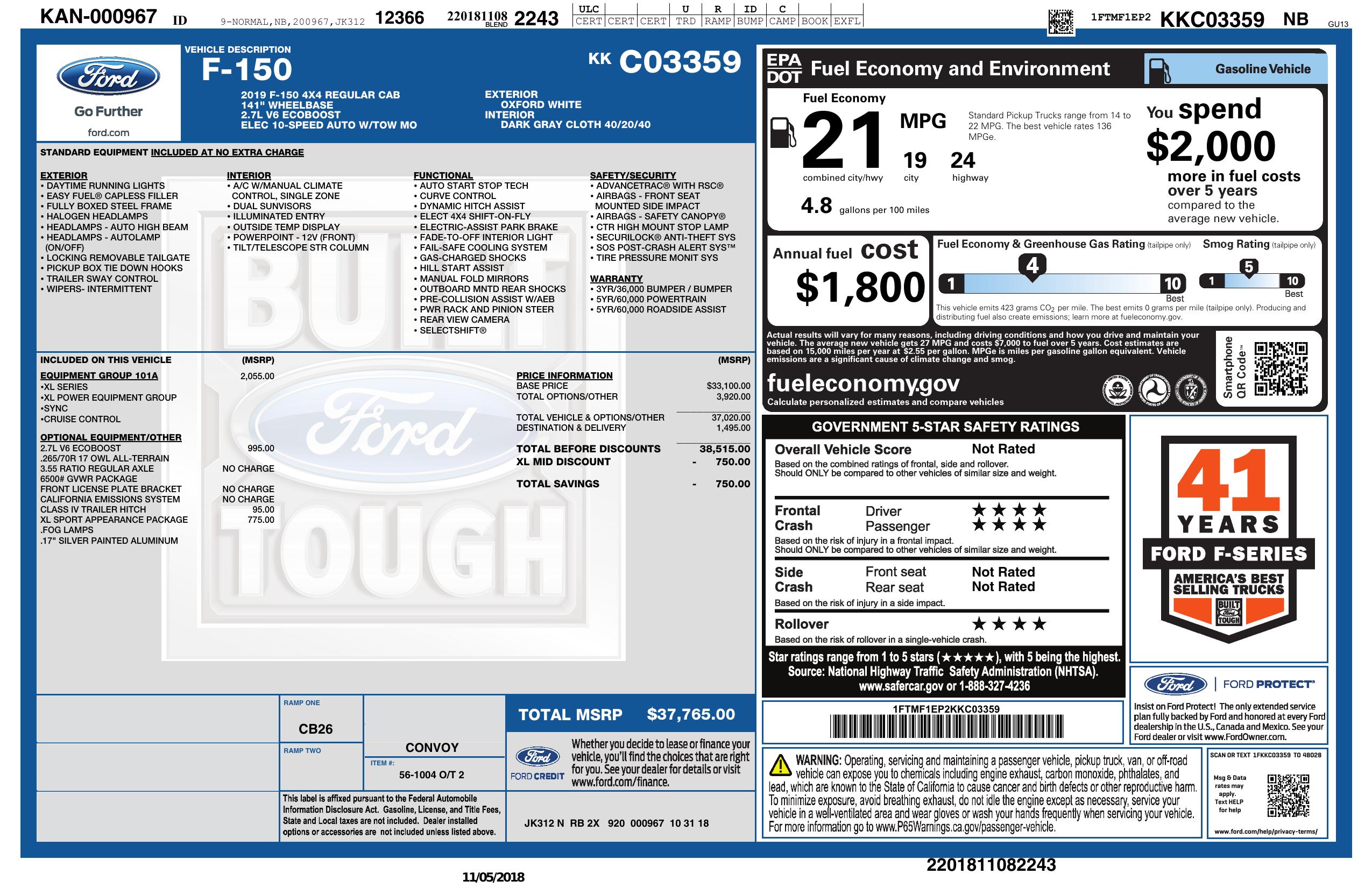 2019 Ford F 150 4 Wd Reg Cab Box