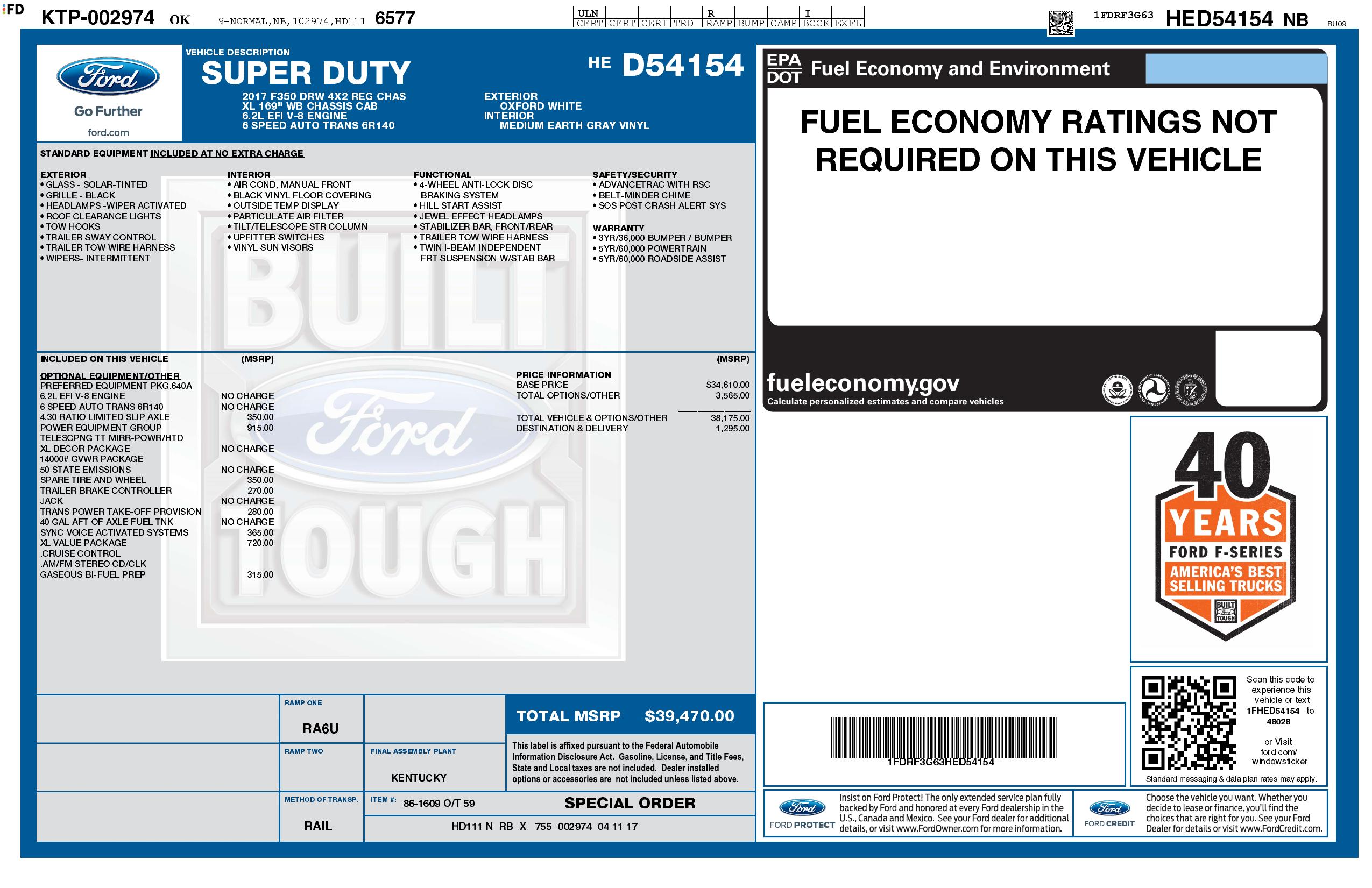 2017 Ford Super Duty F 350 Drw 2 Wd Reg Cab Wb Ca