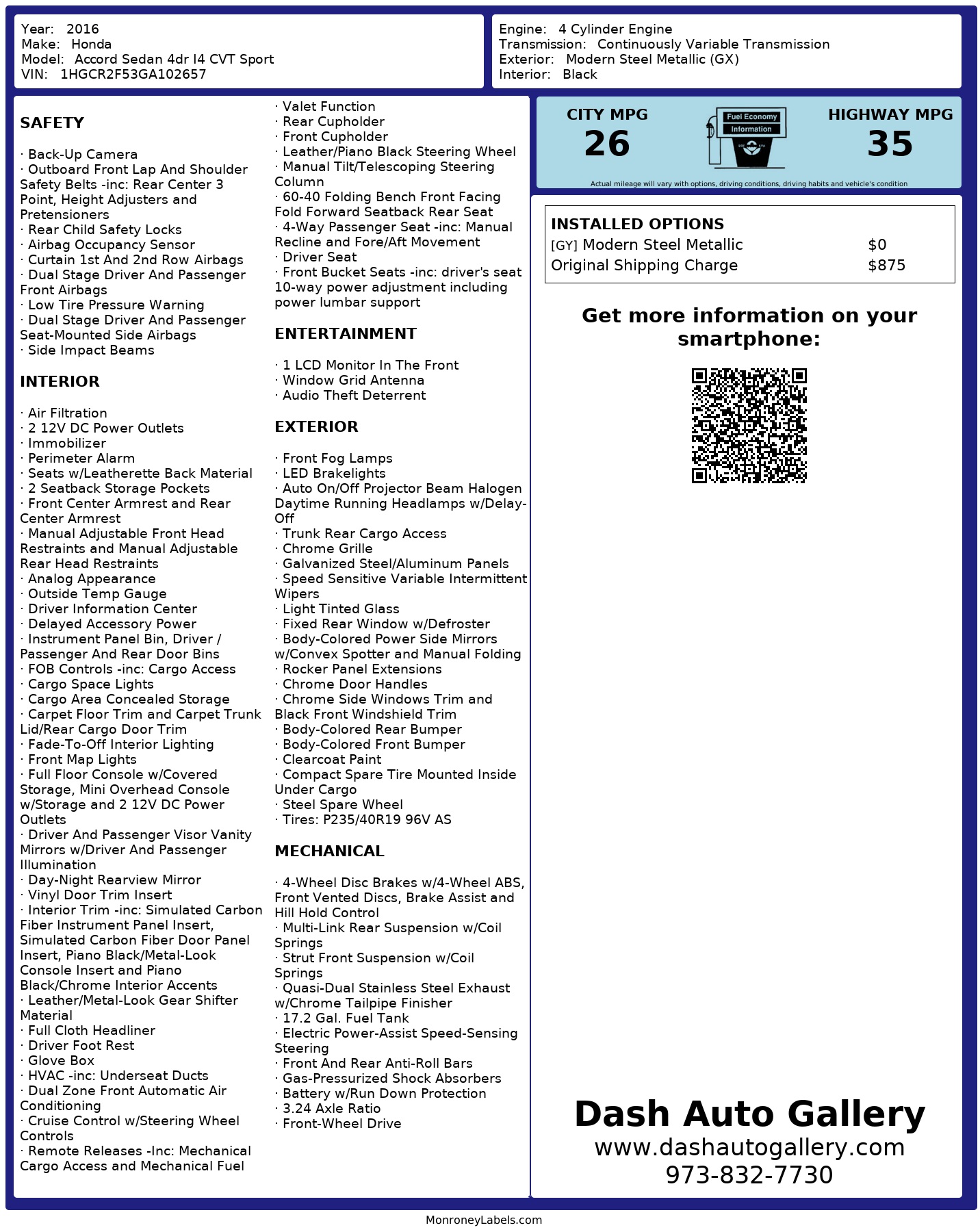 2016 Honda Accord Sedan 4dr I4 Cvt Sport