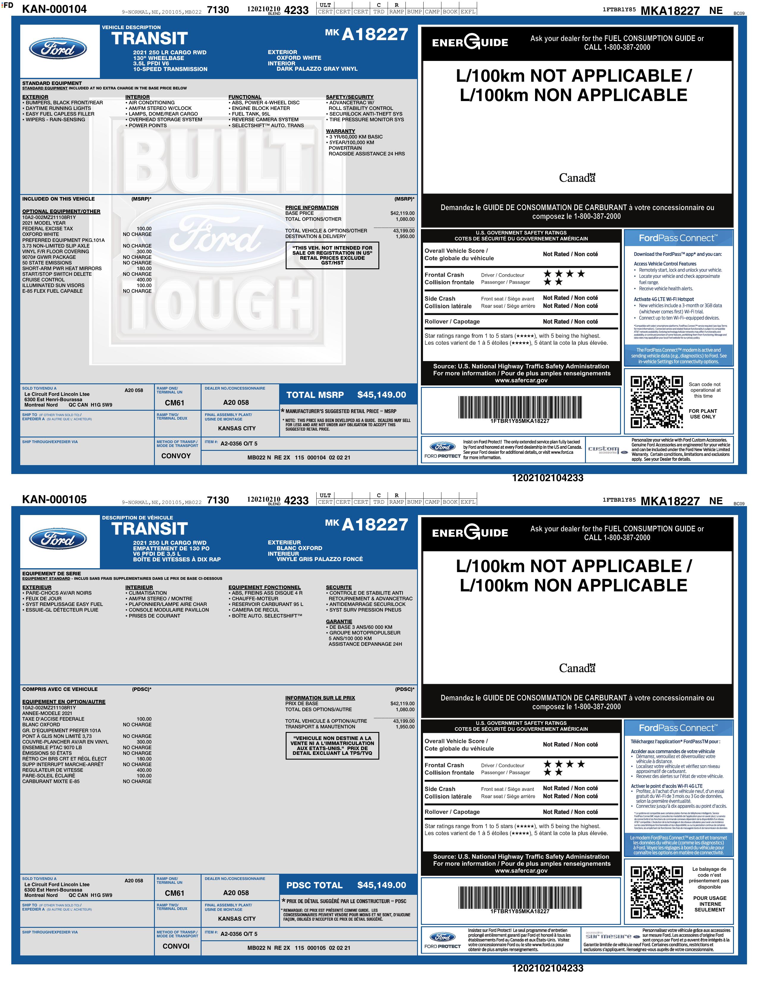 2021 Ford Transit Cargo Van T 250 Low Rf 9070 Gvwr Rwd