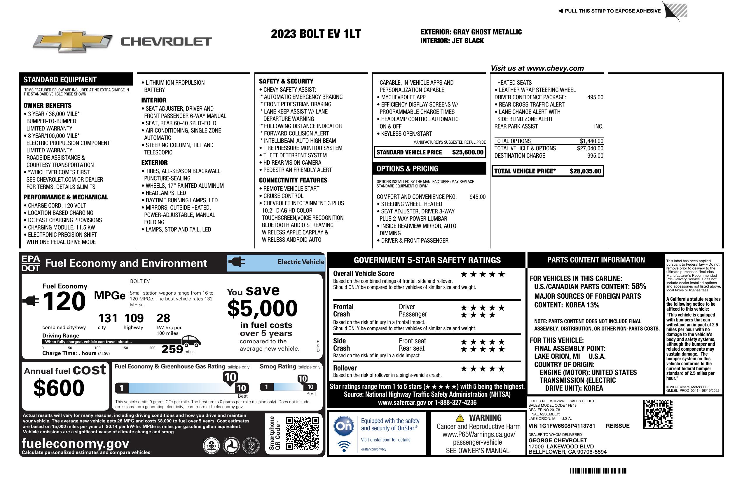 2023 Chevrolet Bolt Ev 5dr Wgn 1 Lt