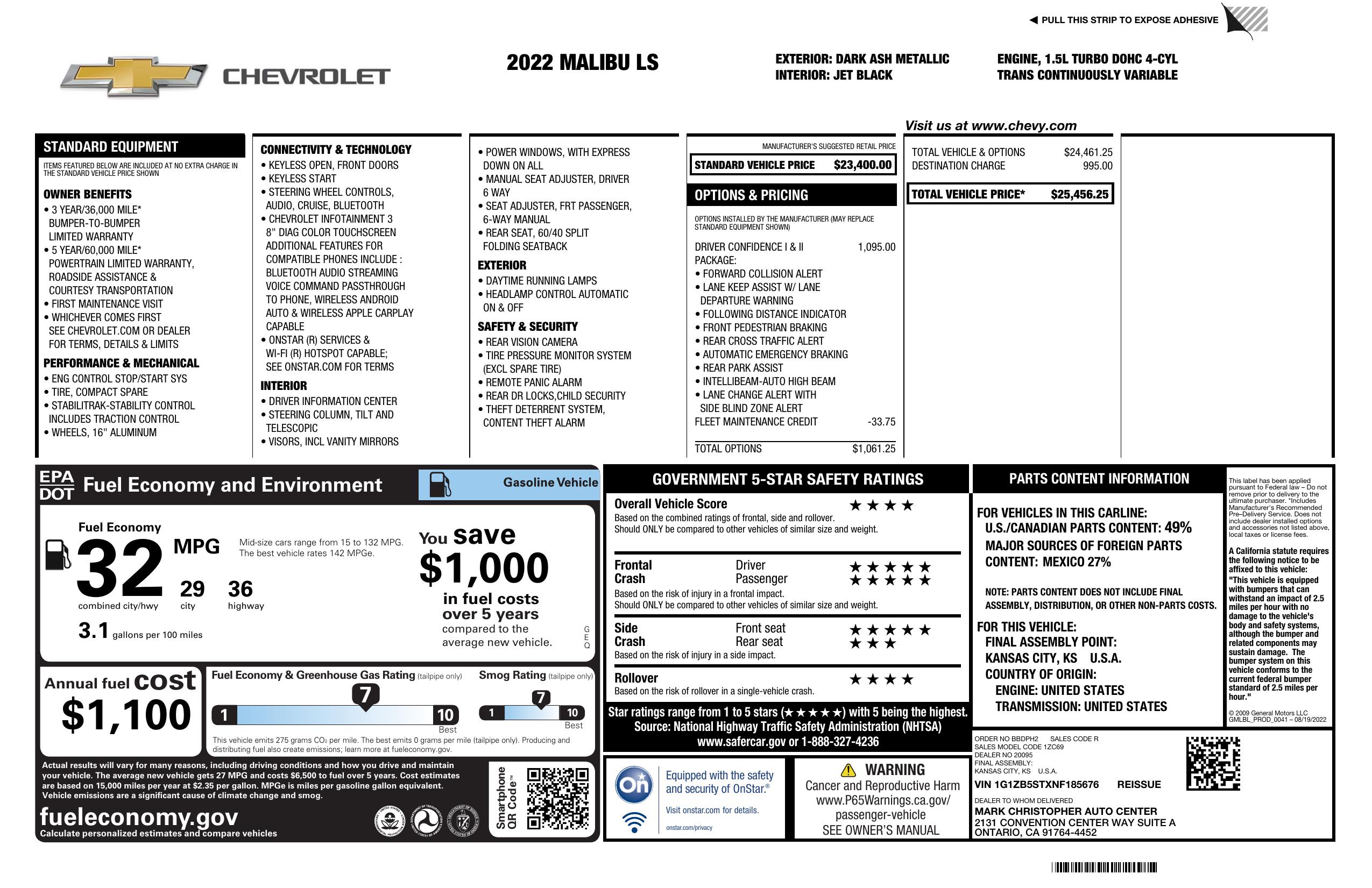2022 Chevrolet Malibu 4dr Sdn Ls W/1 Ls