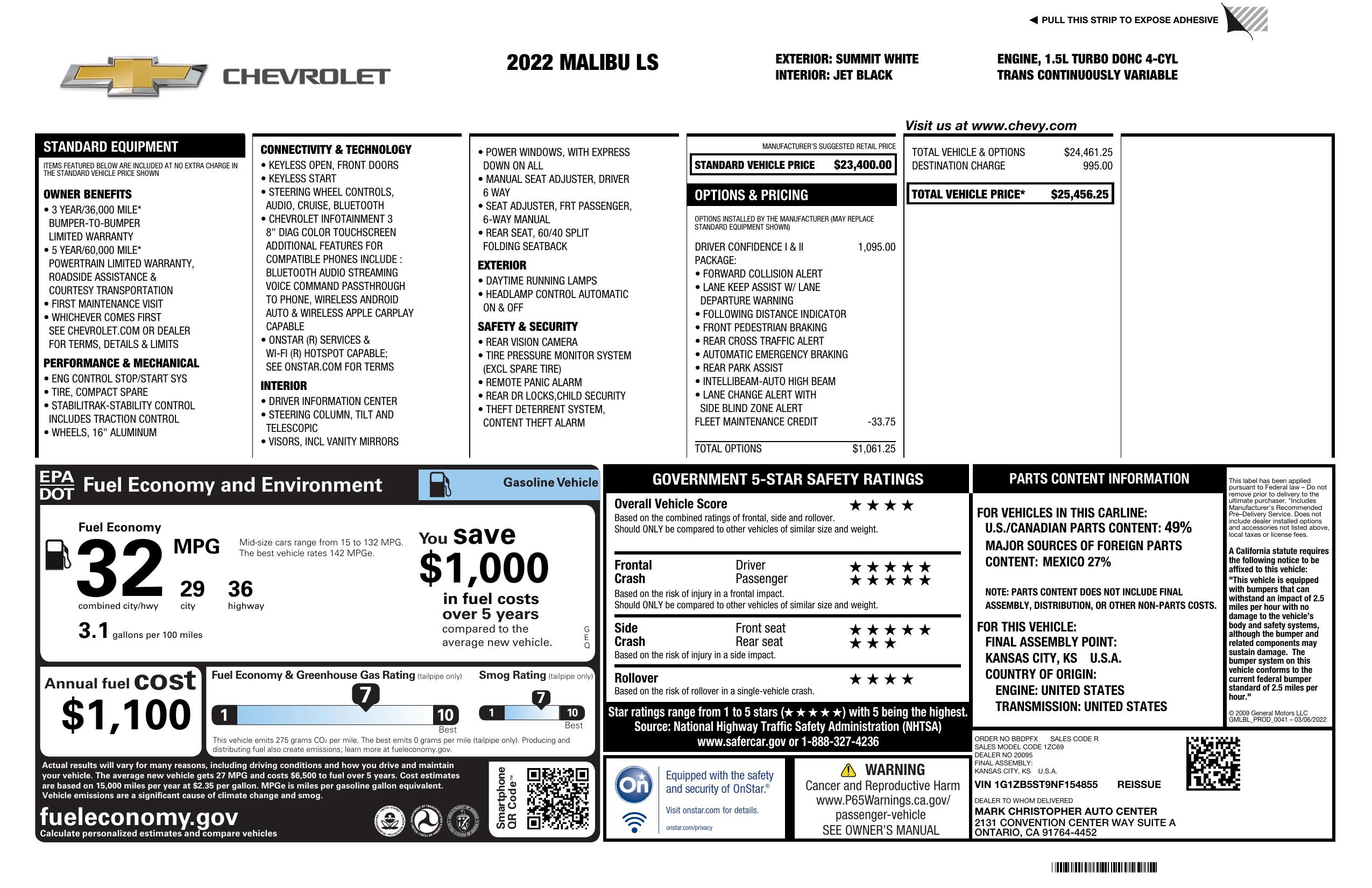 2022 Chevrolet Malibu 4dr Sdn Ls W/1 Ls