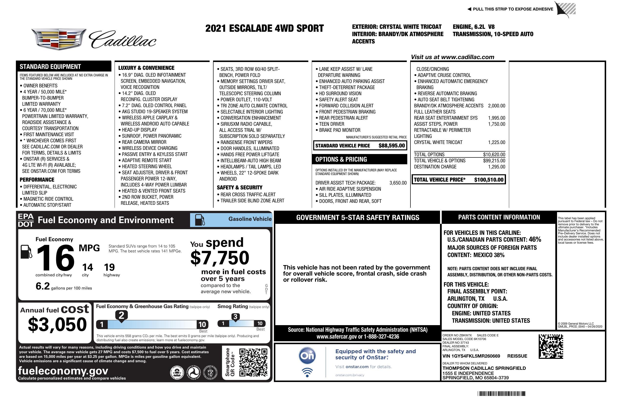 2021 Cadillac Escalade 4 Wd 4dr Sport
