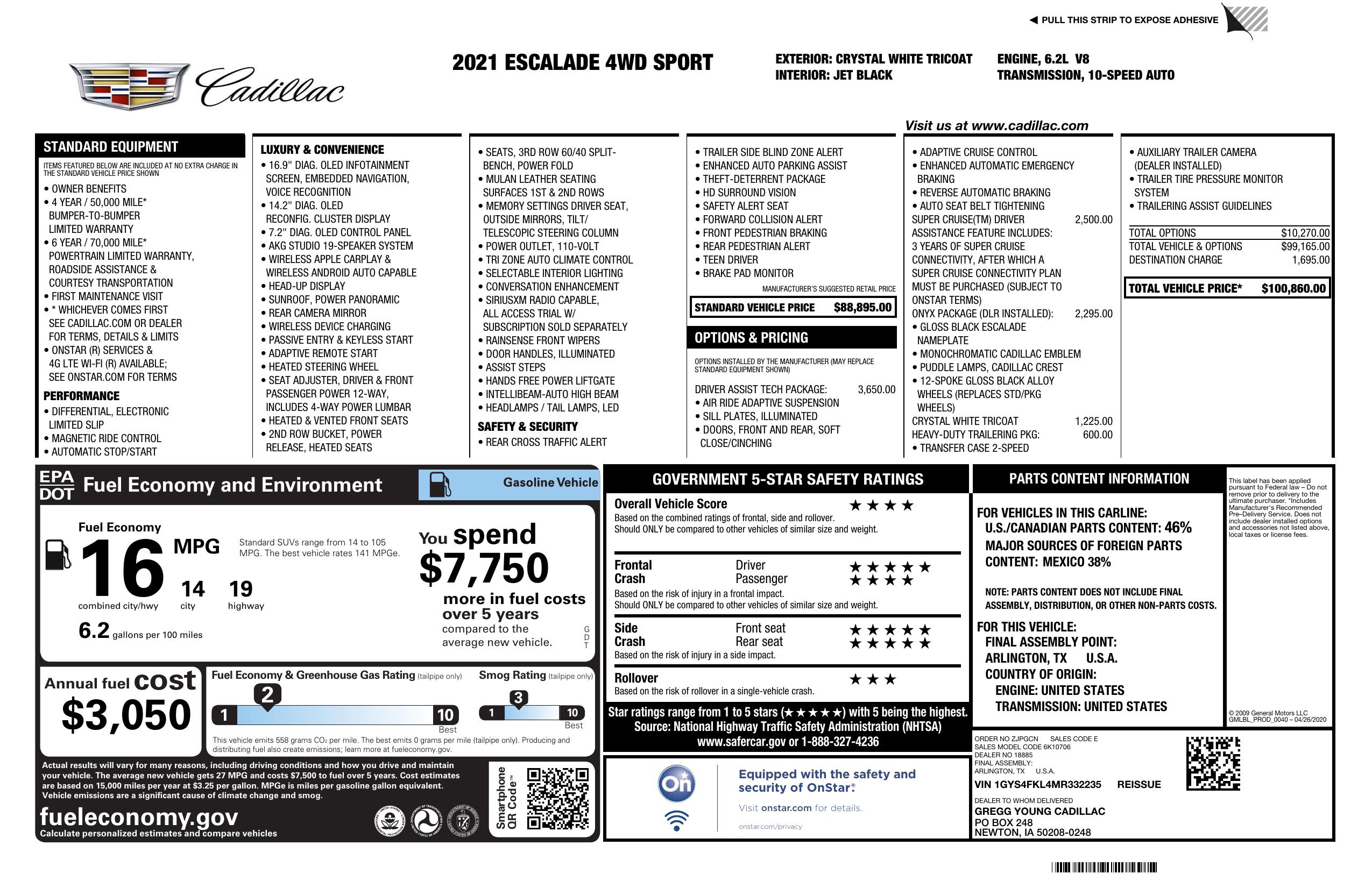 2021 Cadillac Escalade 4 Wd 4dr Sport