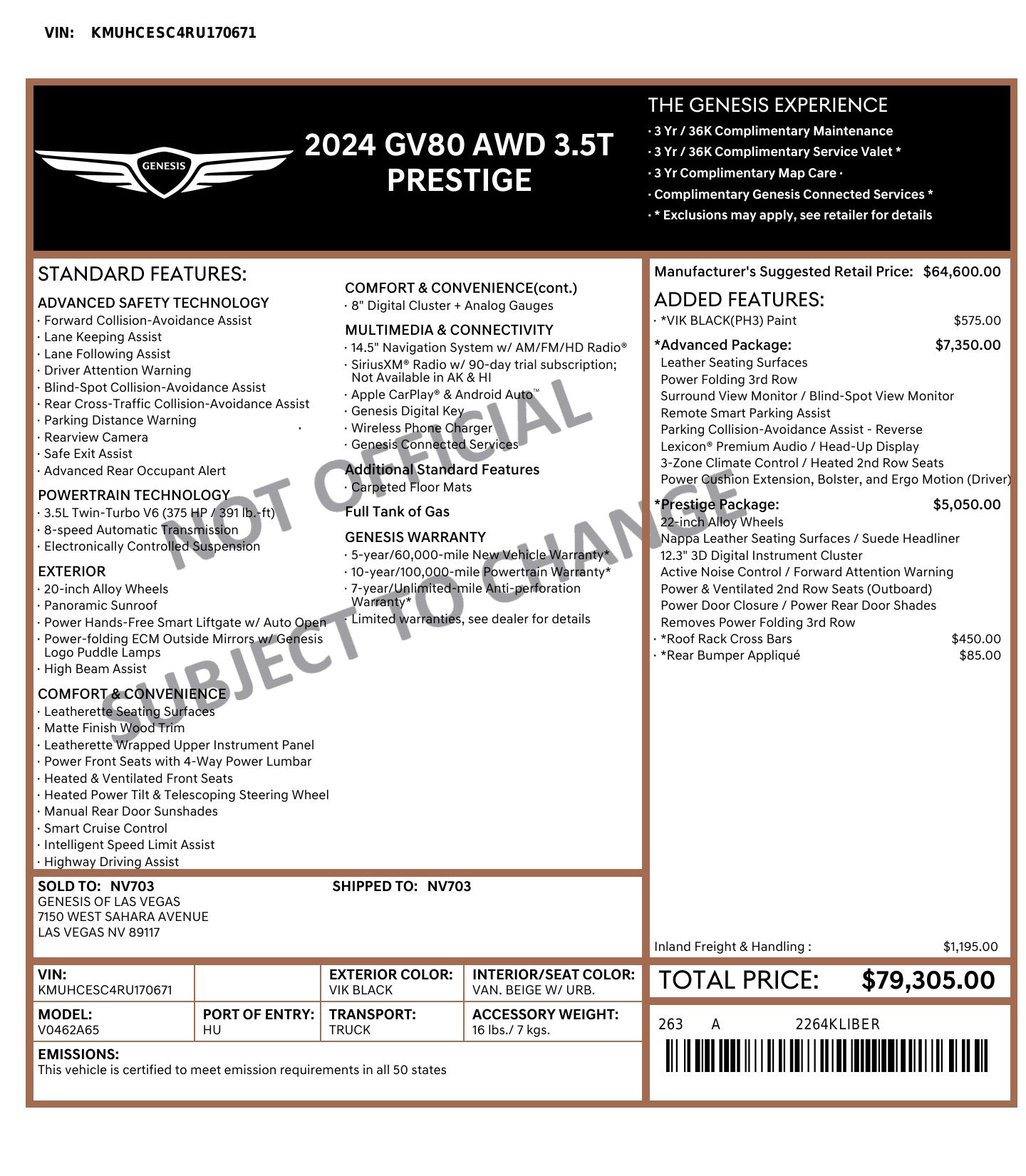 2024 Genesis Gv80 Awd 3.5 T 4dr Suv